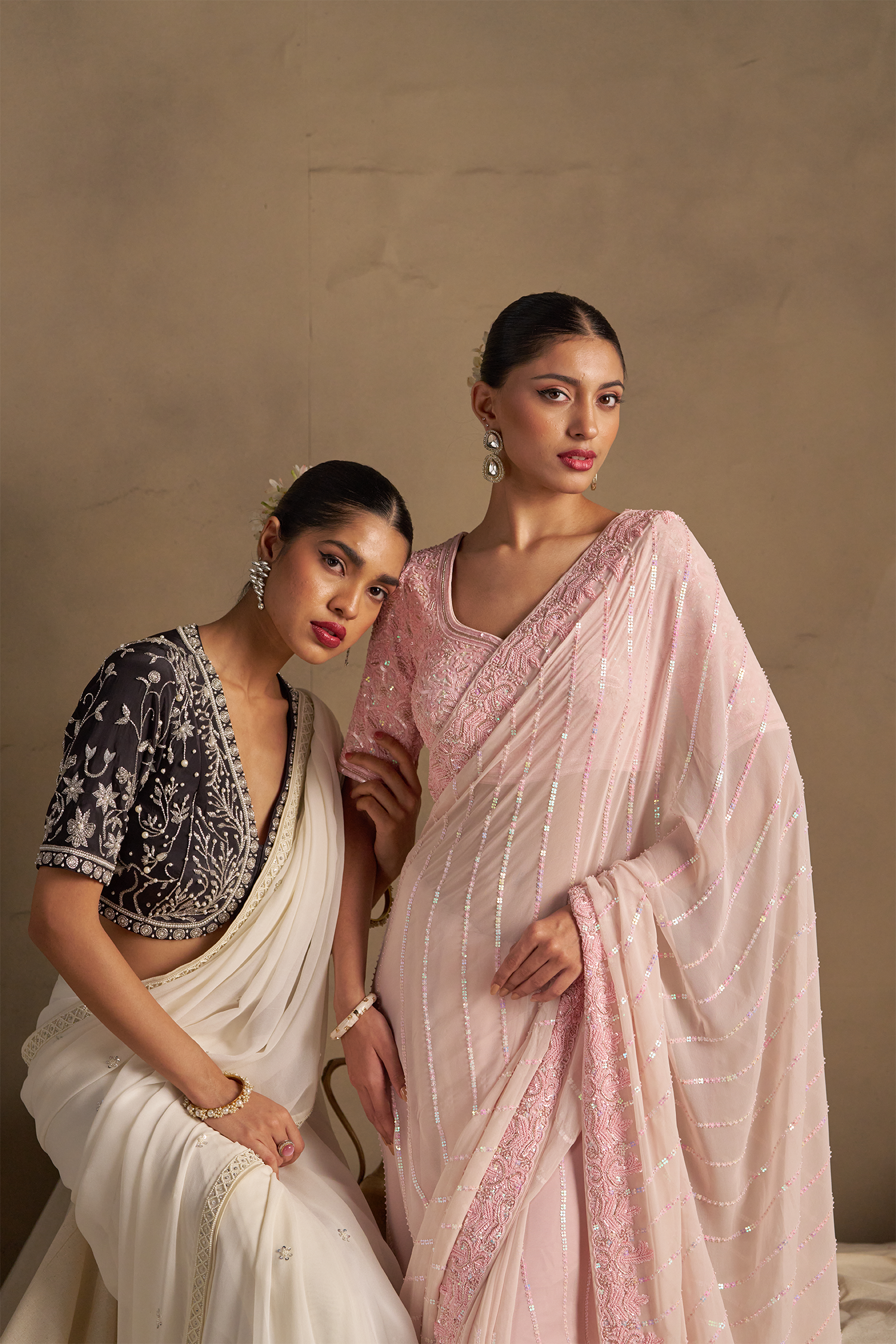 Our latest collection brings together radiant palettes, intricate embroidery, and silhouettes designed for celebration—from intimate gatherings to grand festivities.