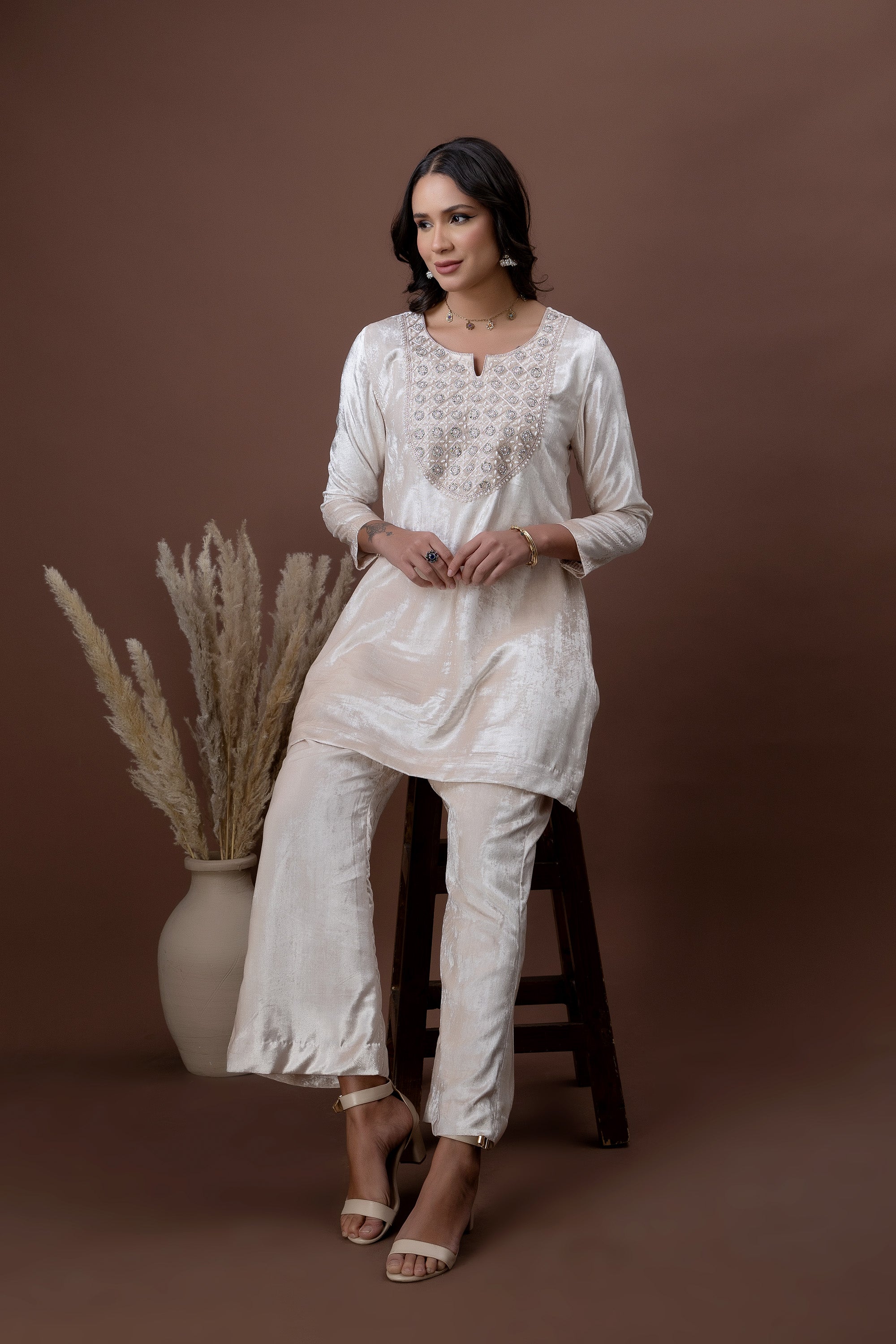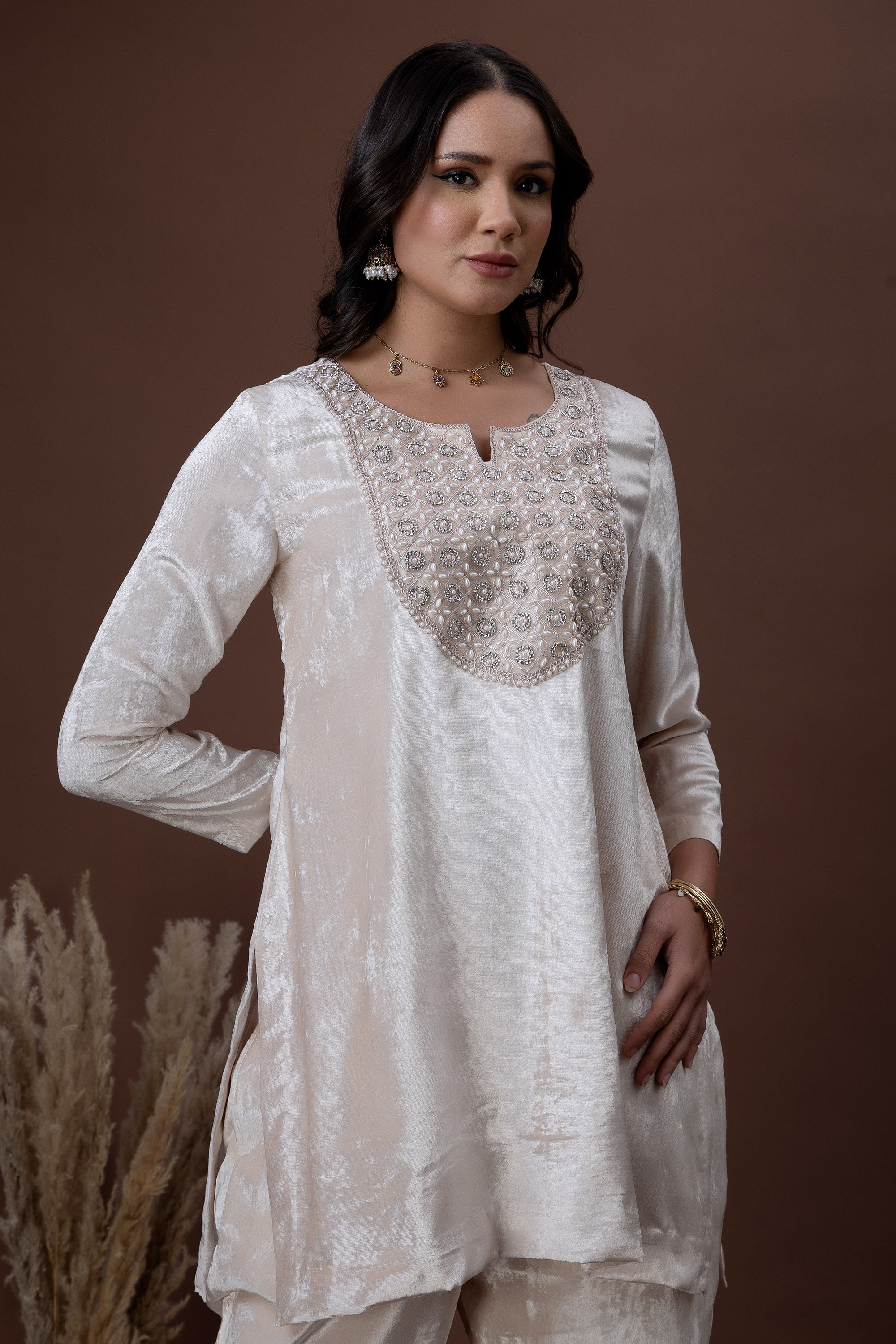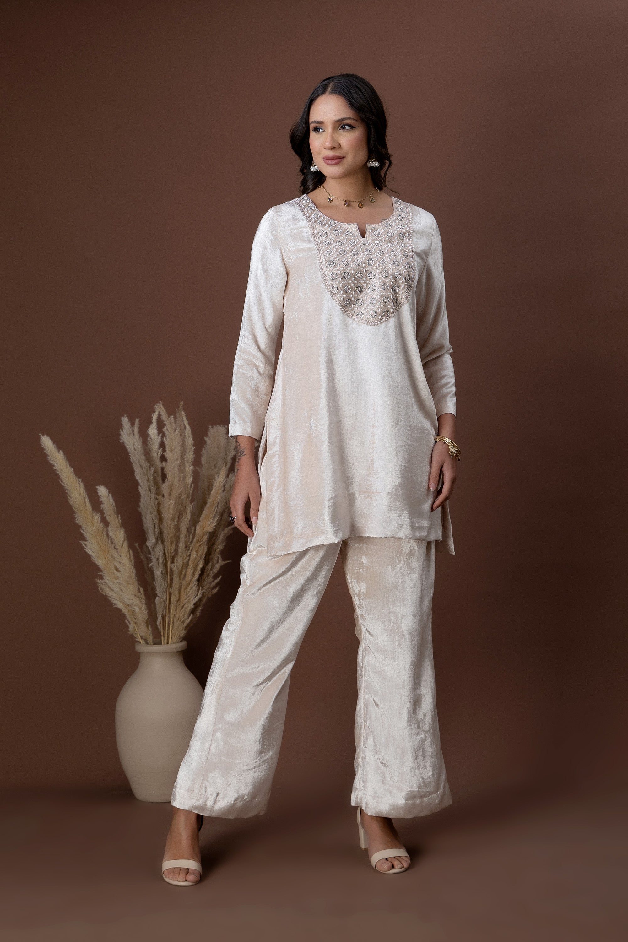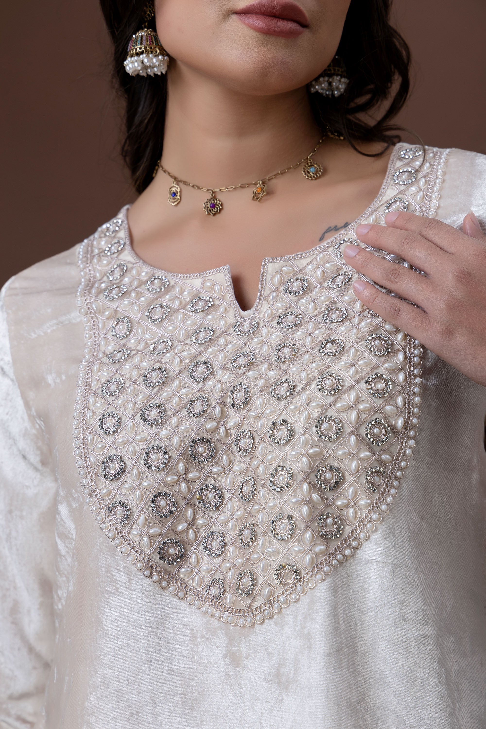 Eraya Shadow Pearl Hand Embroidery Kurta Set