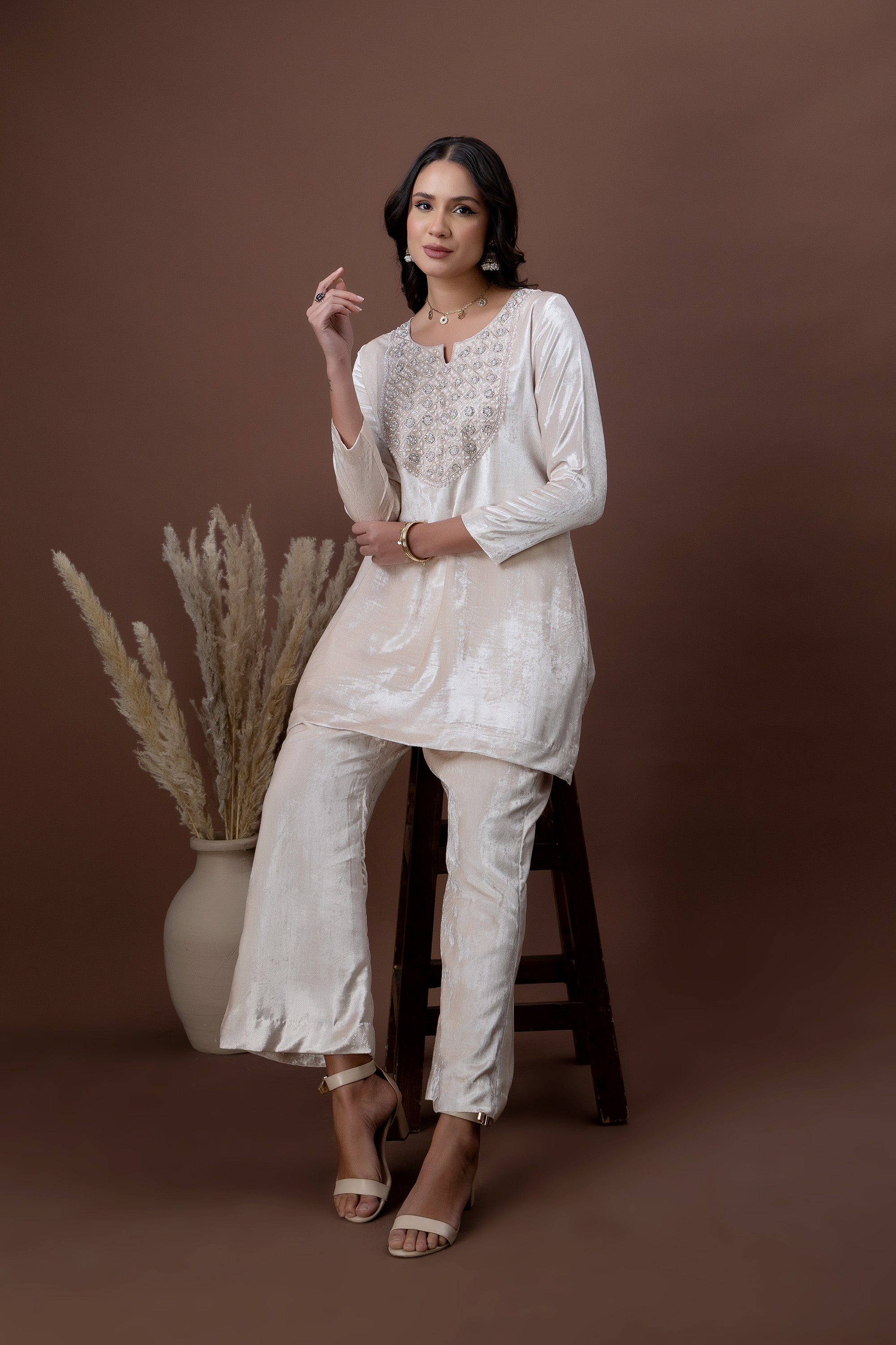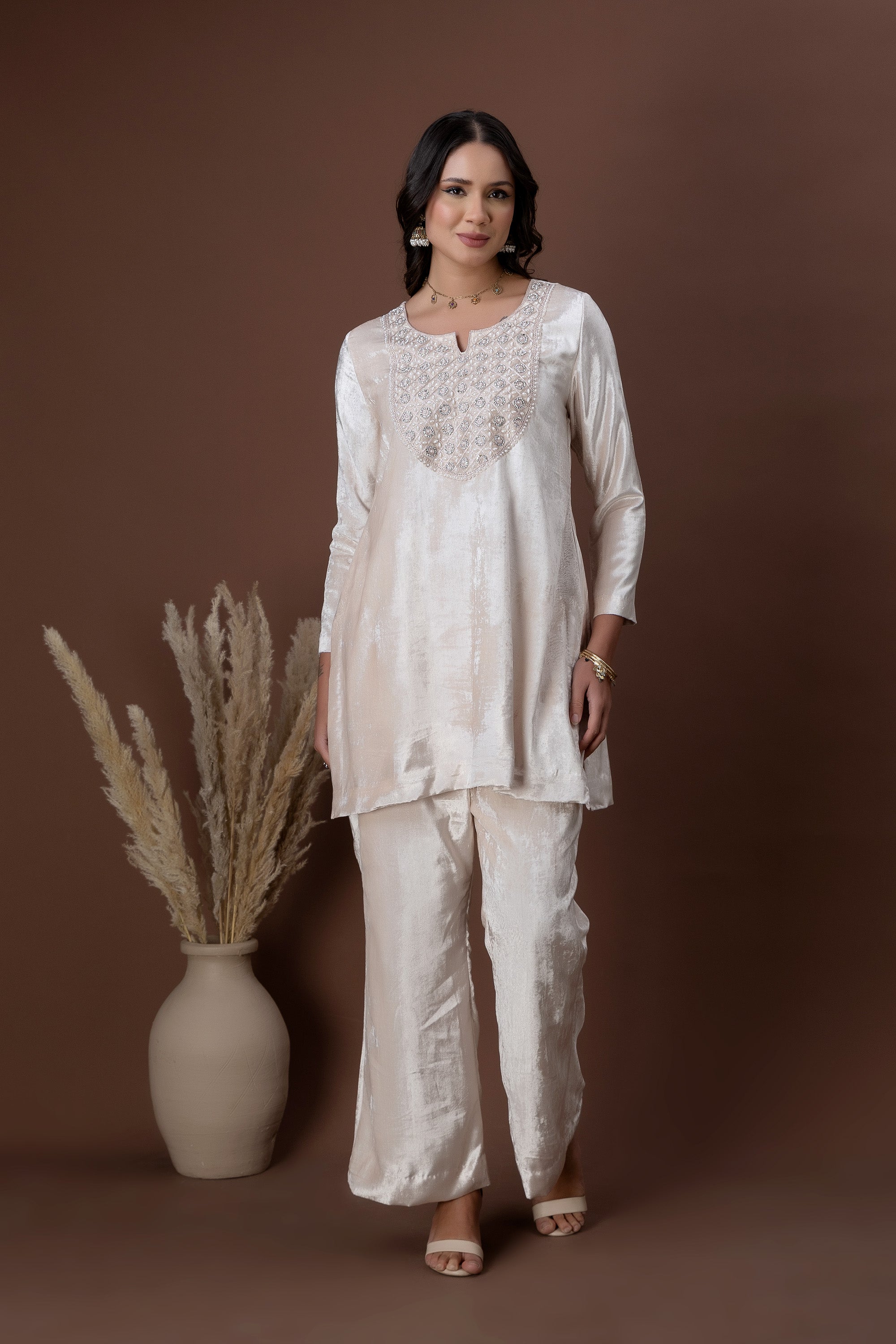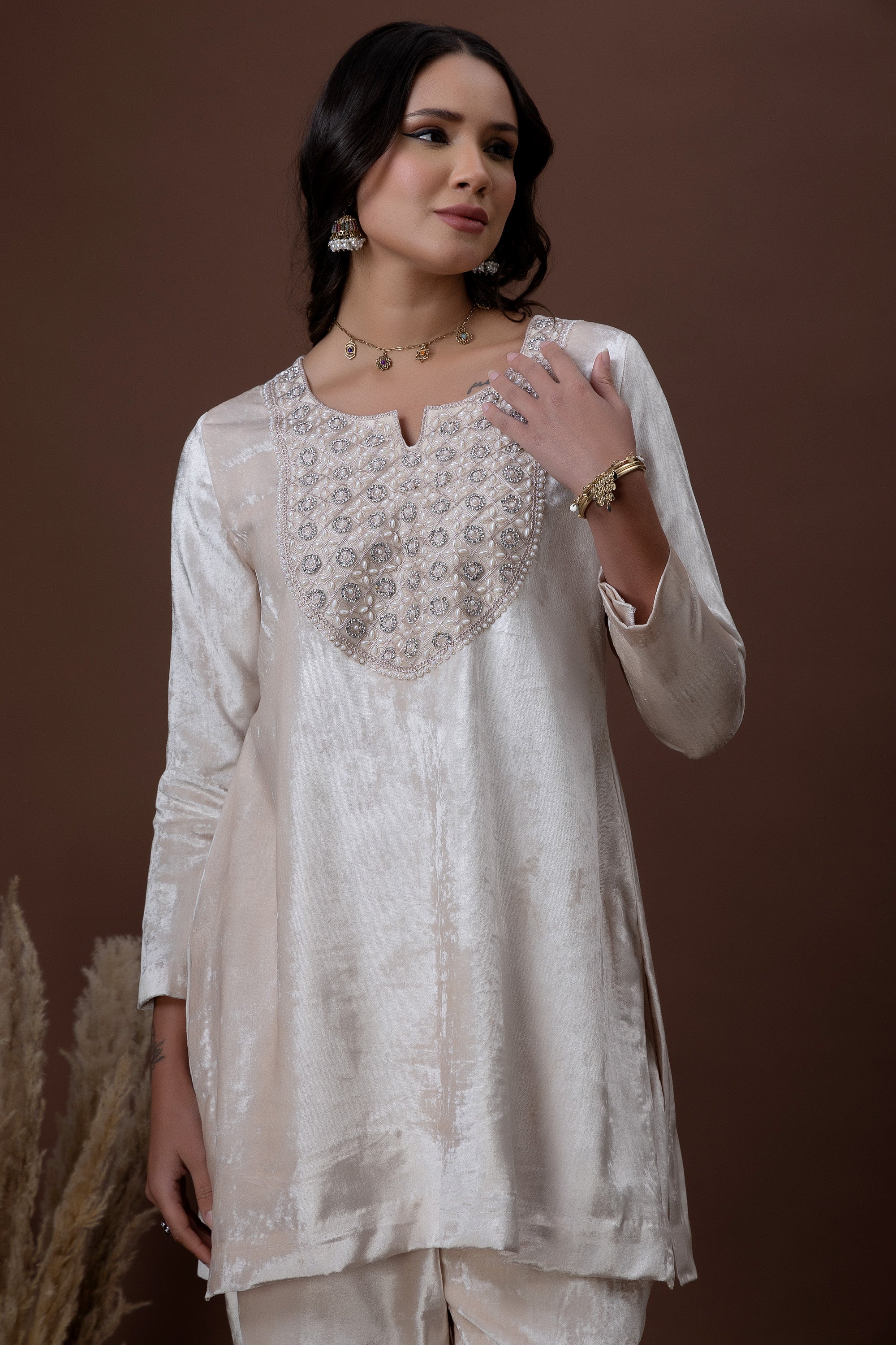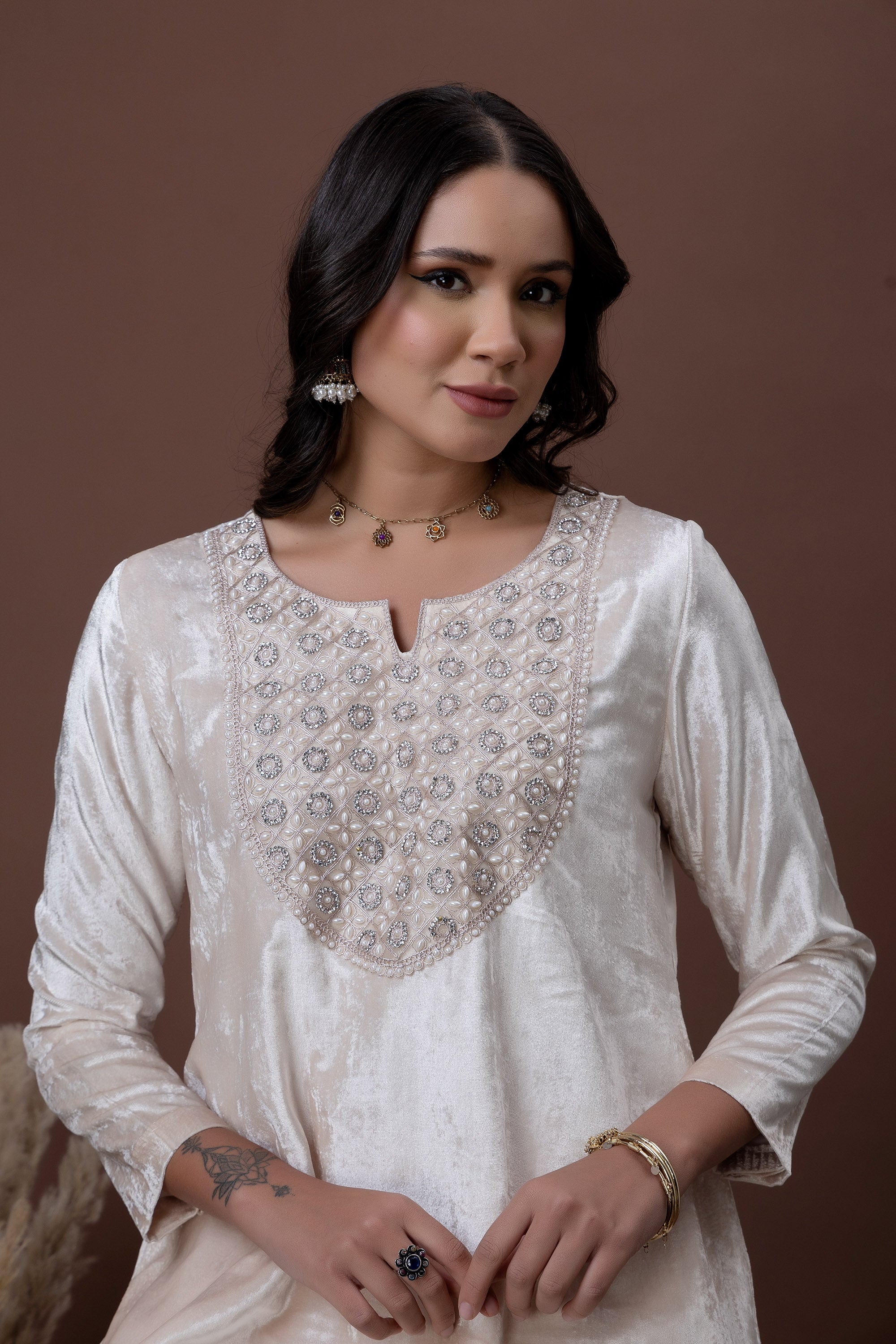 Eraya Shadow Pearl Hand Embroidery Kurta Set