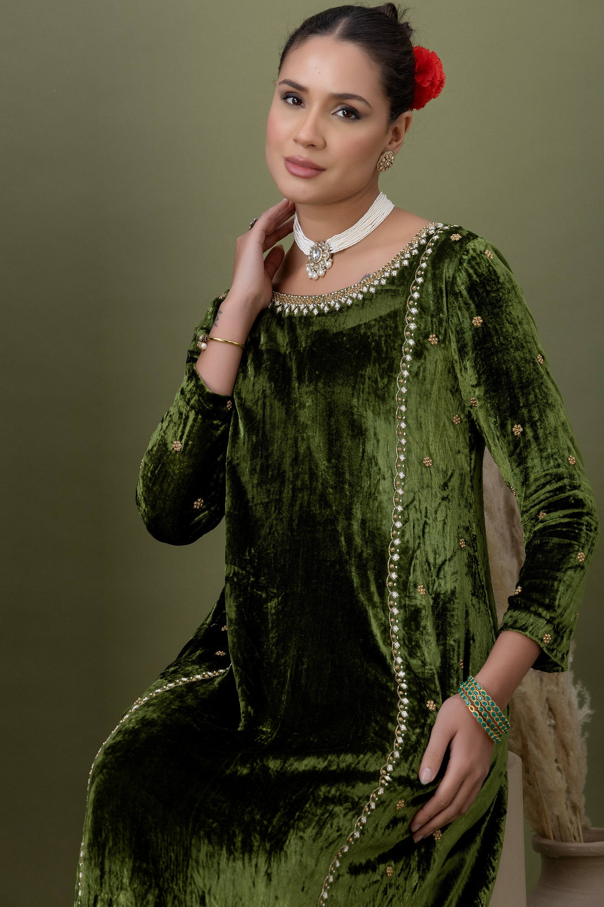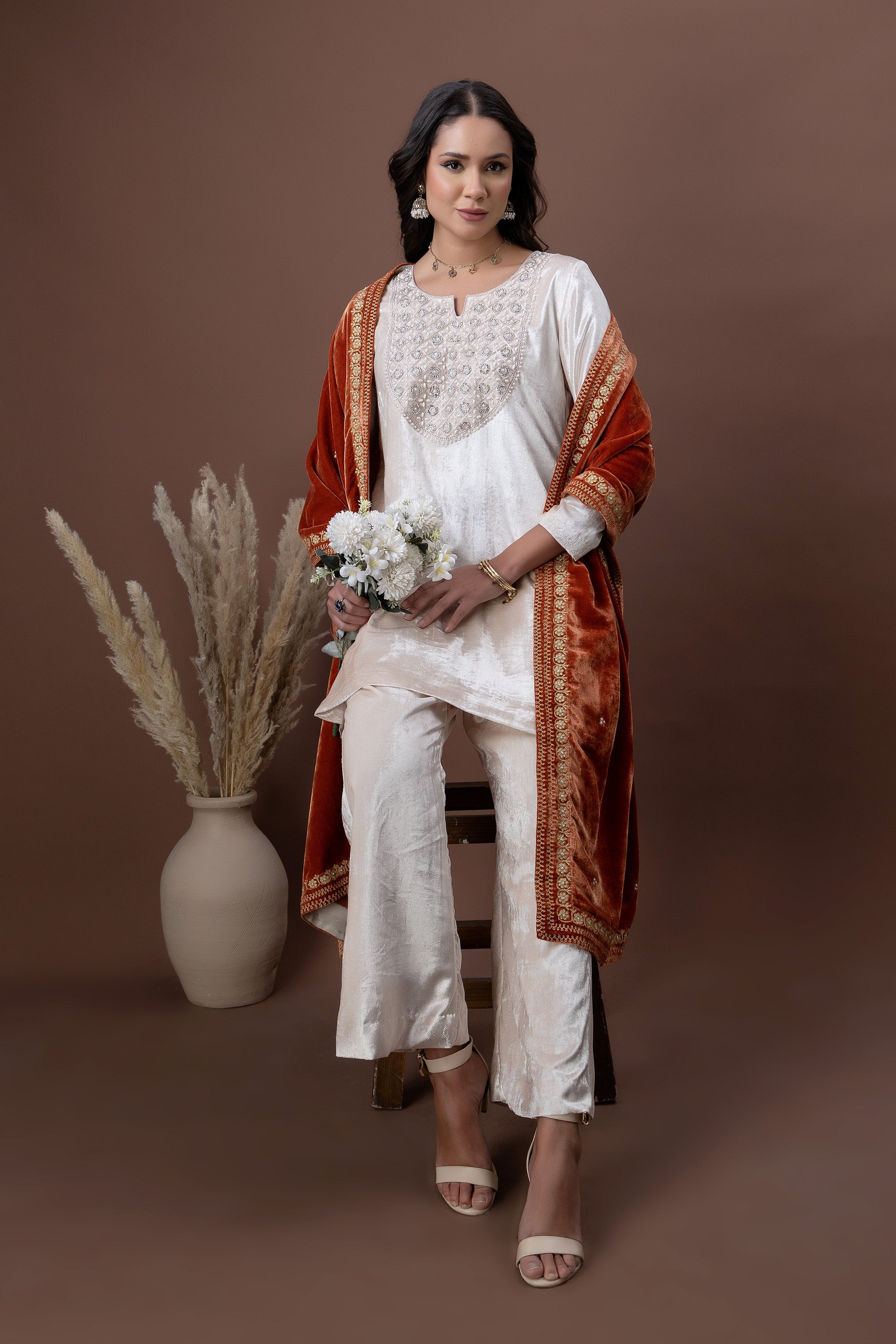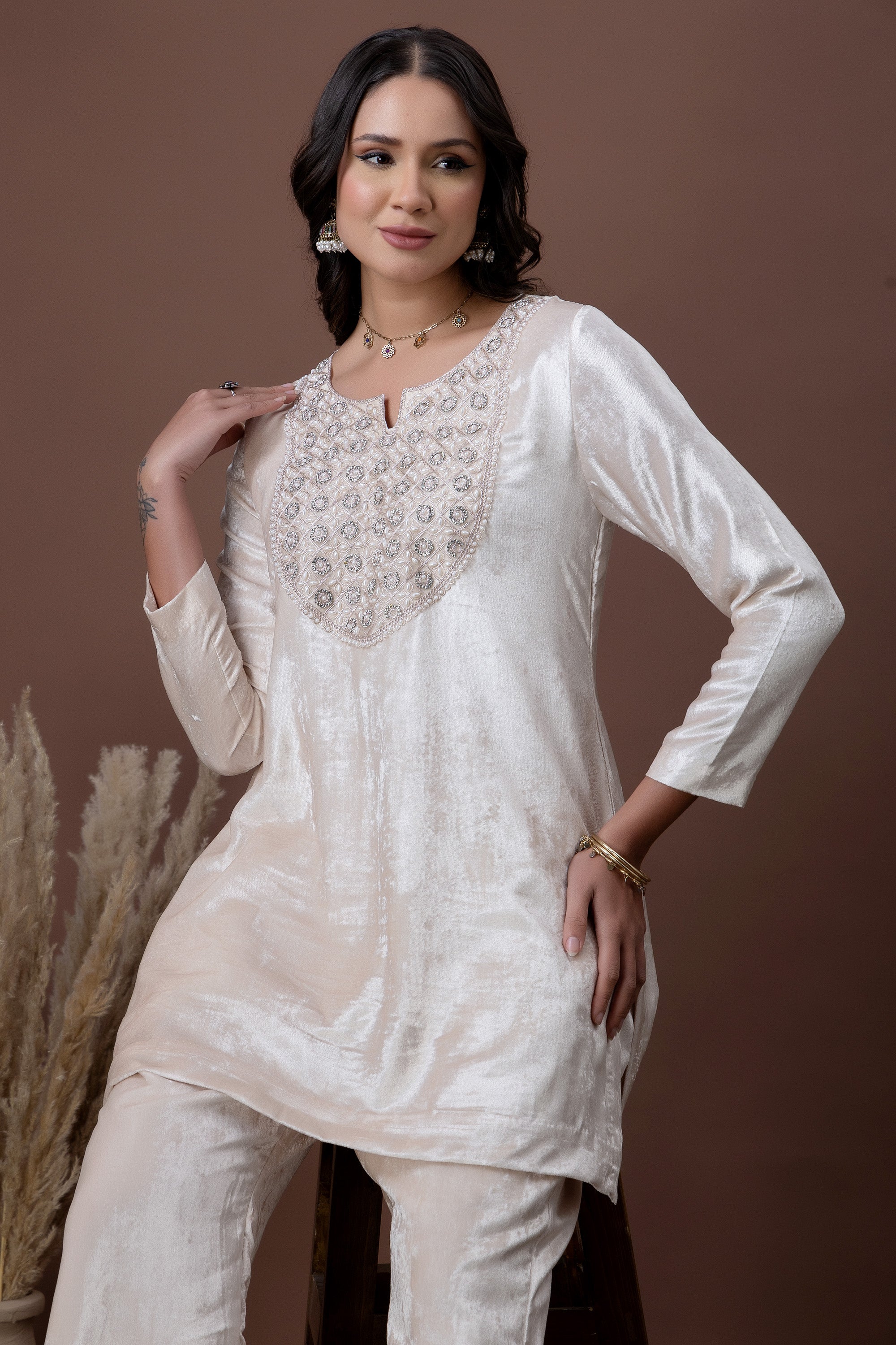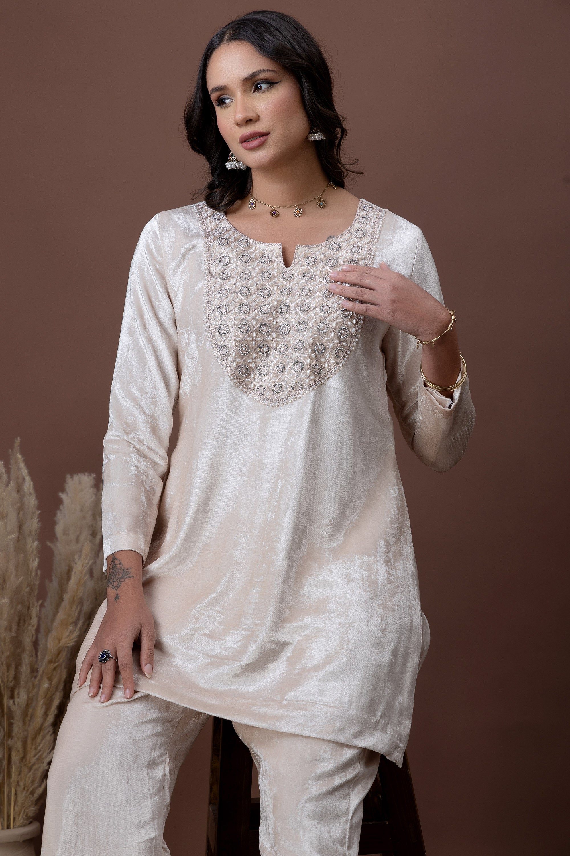 Eraya Shadow Pearl Hand Embroidery Kurta Set