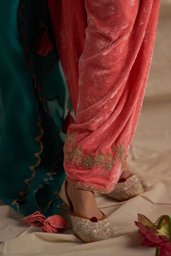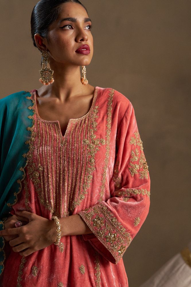 Seya Peach pure silk velvet suit with salwar
