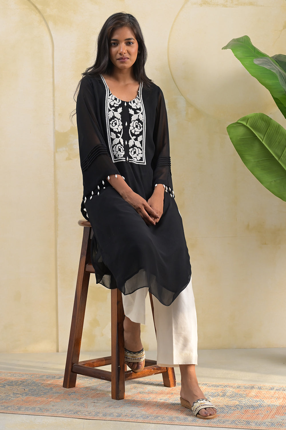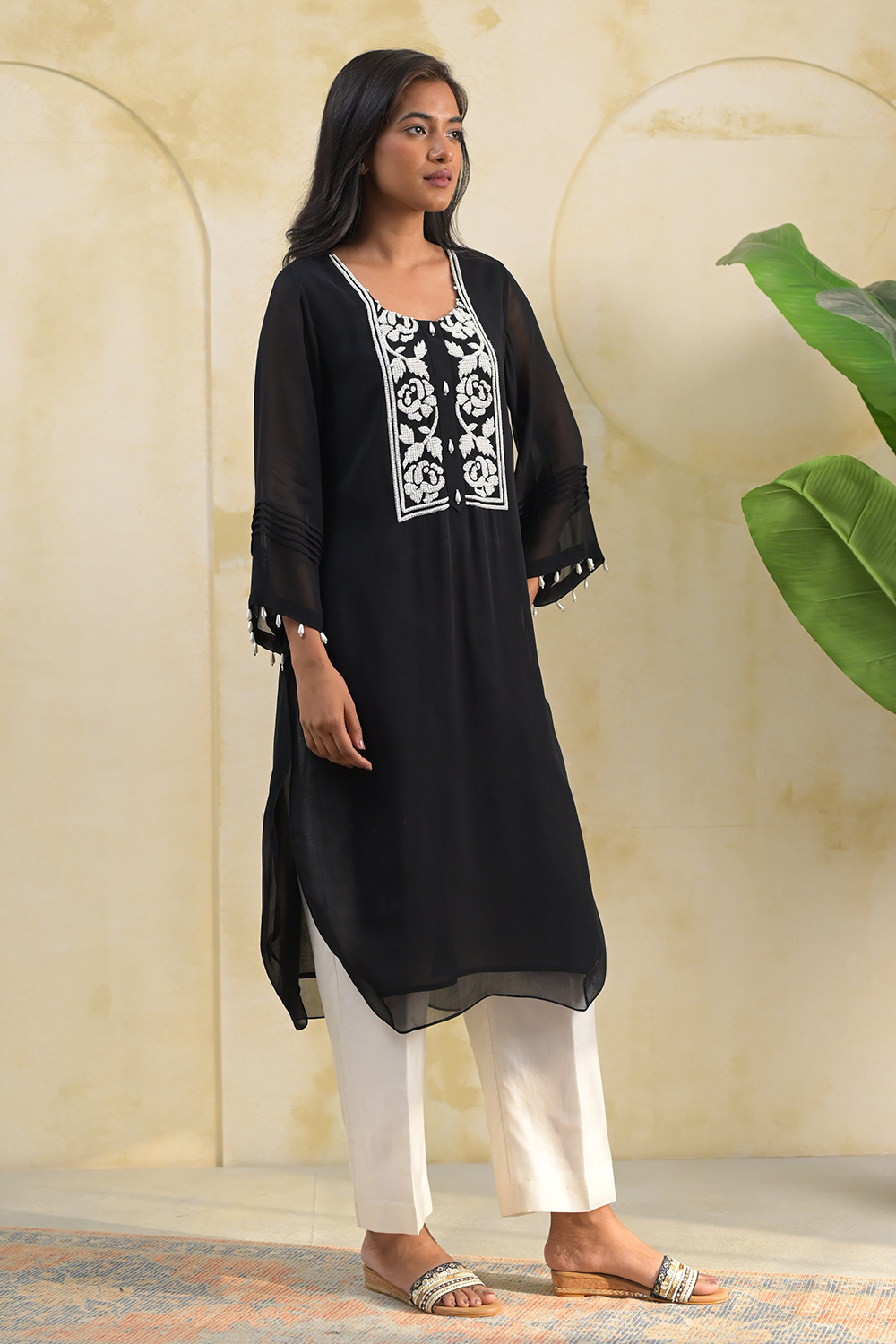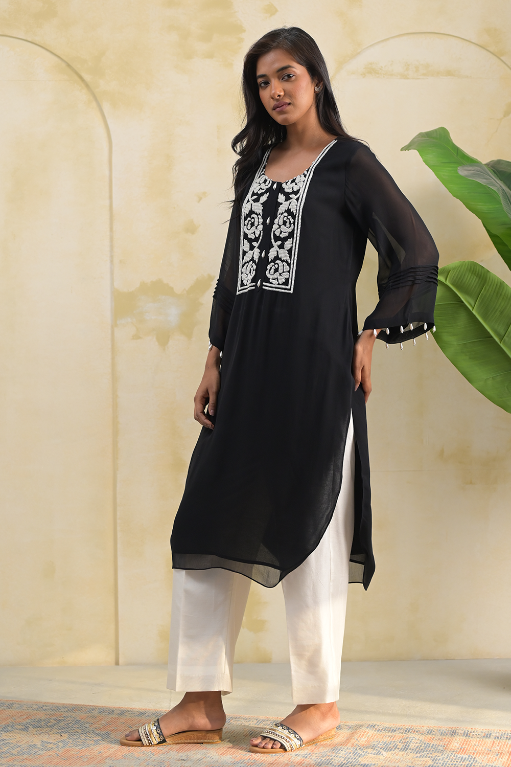 Eraya Shadow Pearl Hand Embroidery Kurta Set