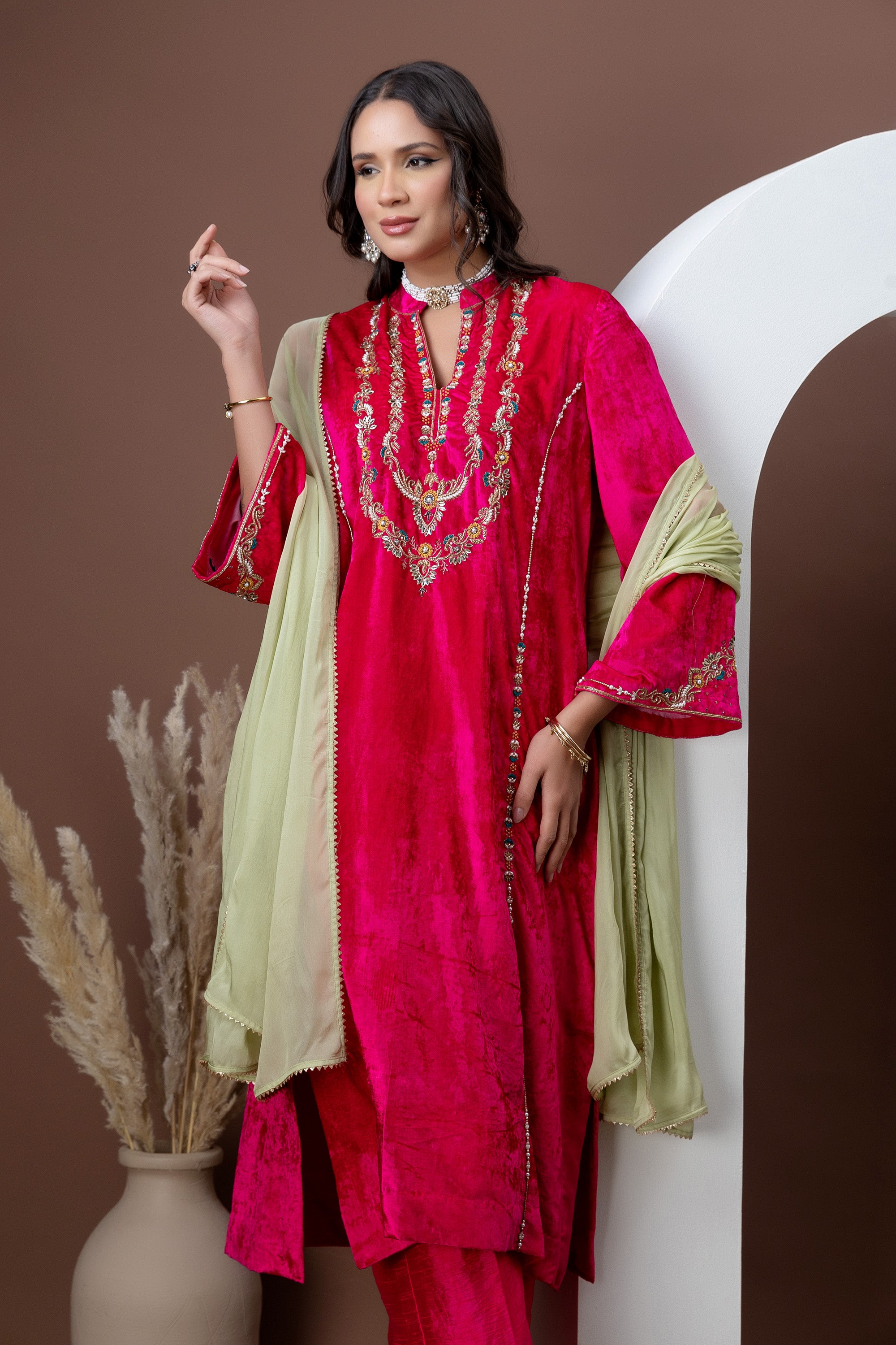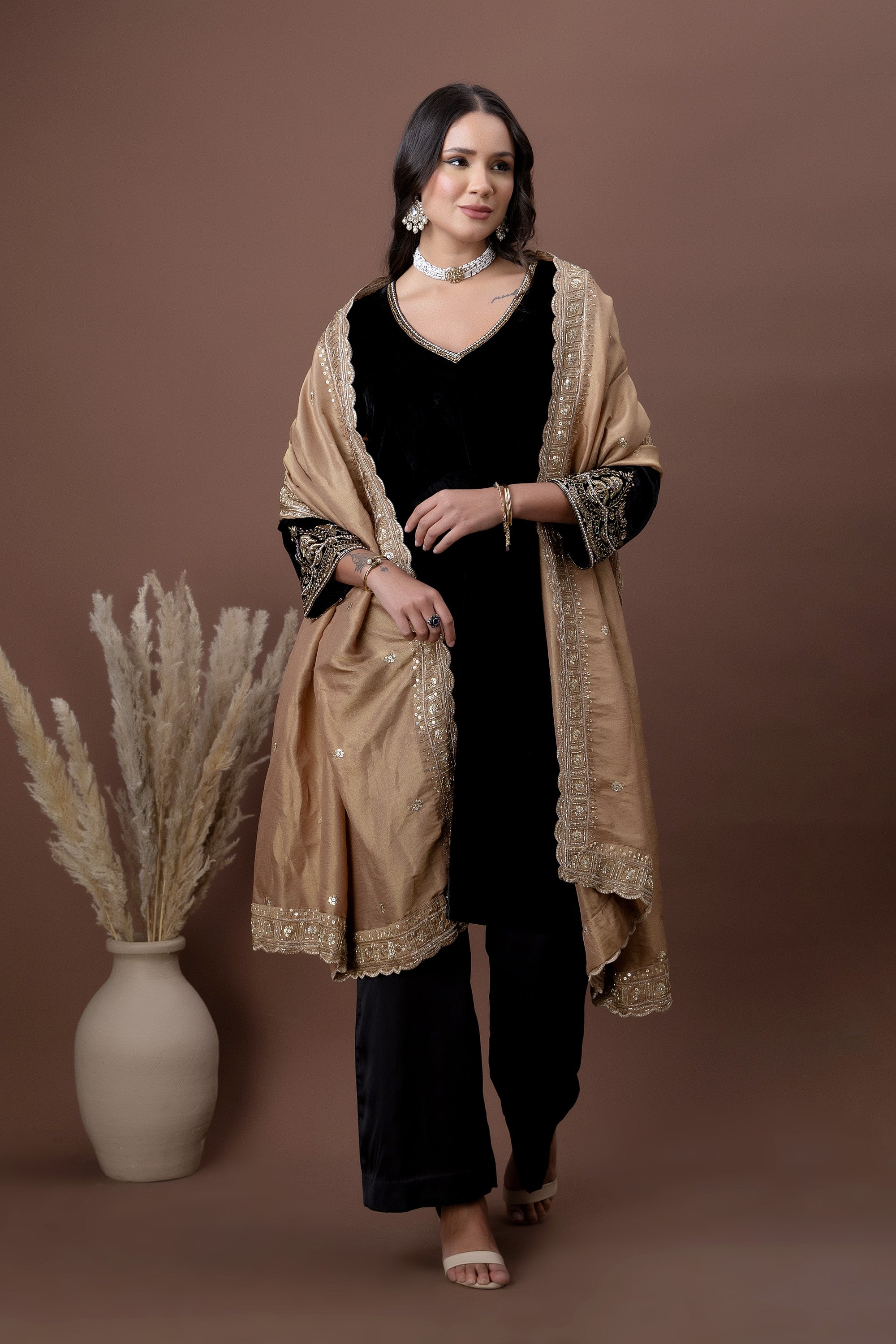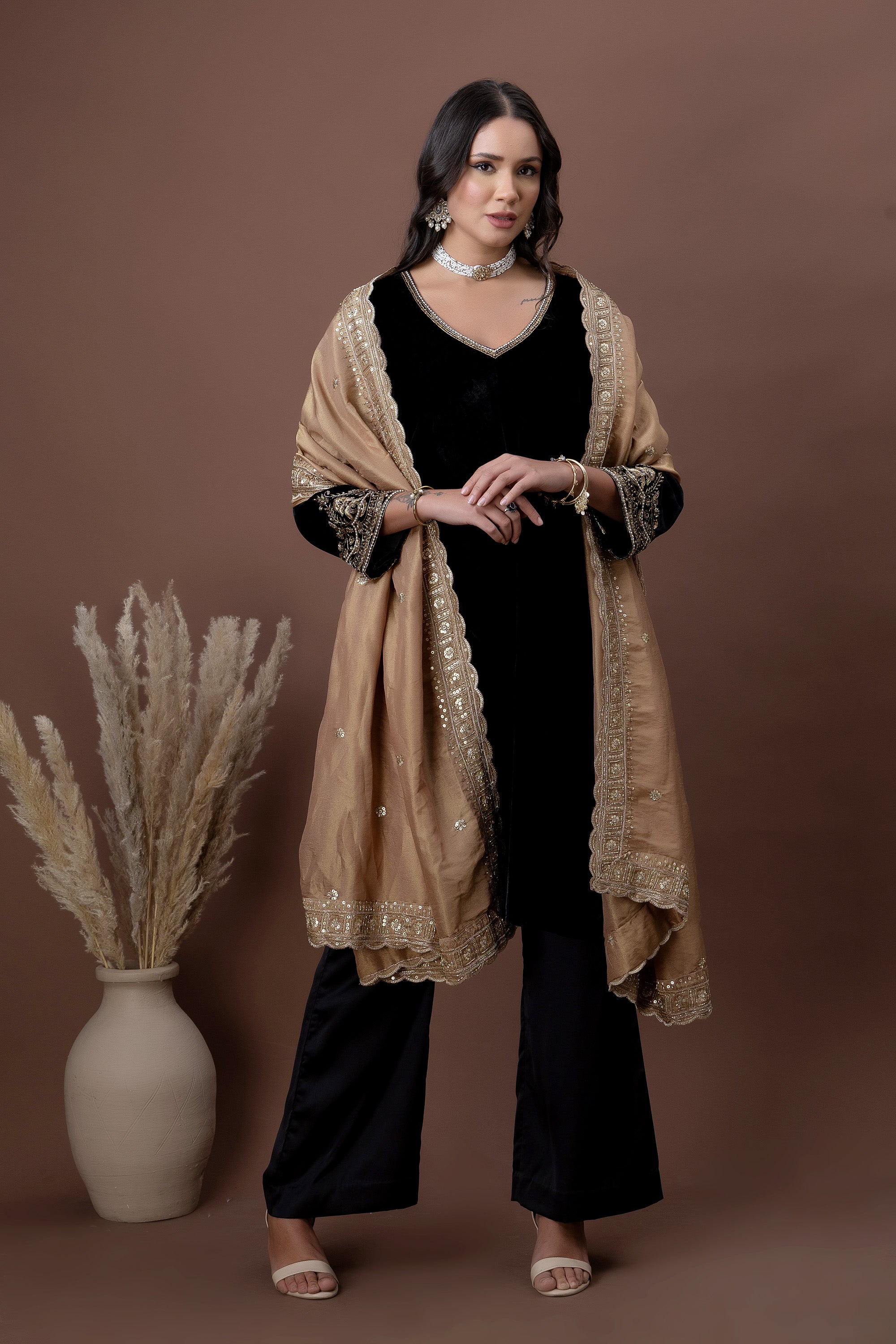 Aarzoo Rust Velvet Dupatta Set