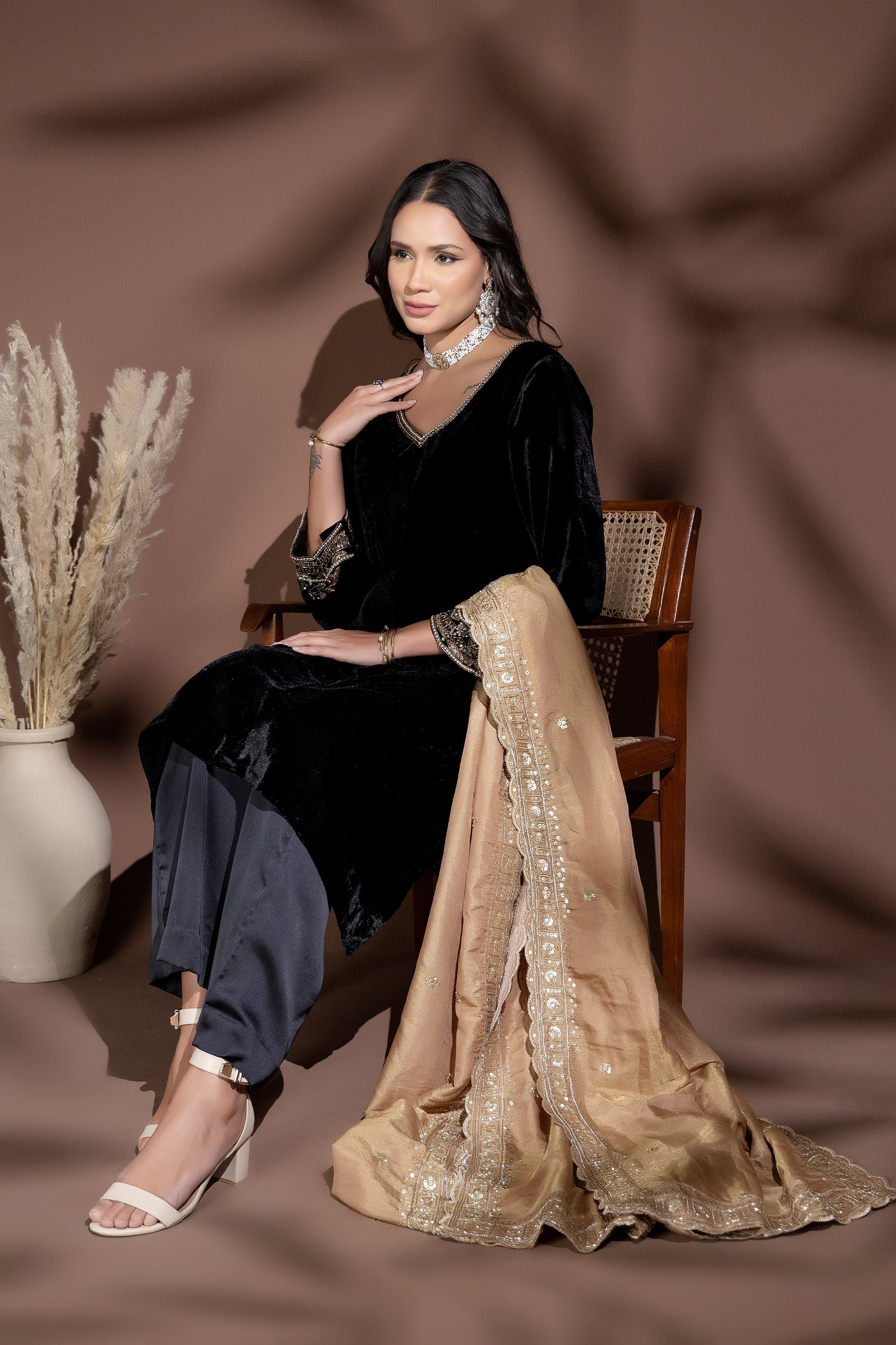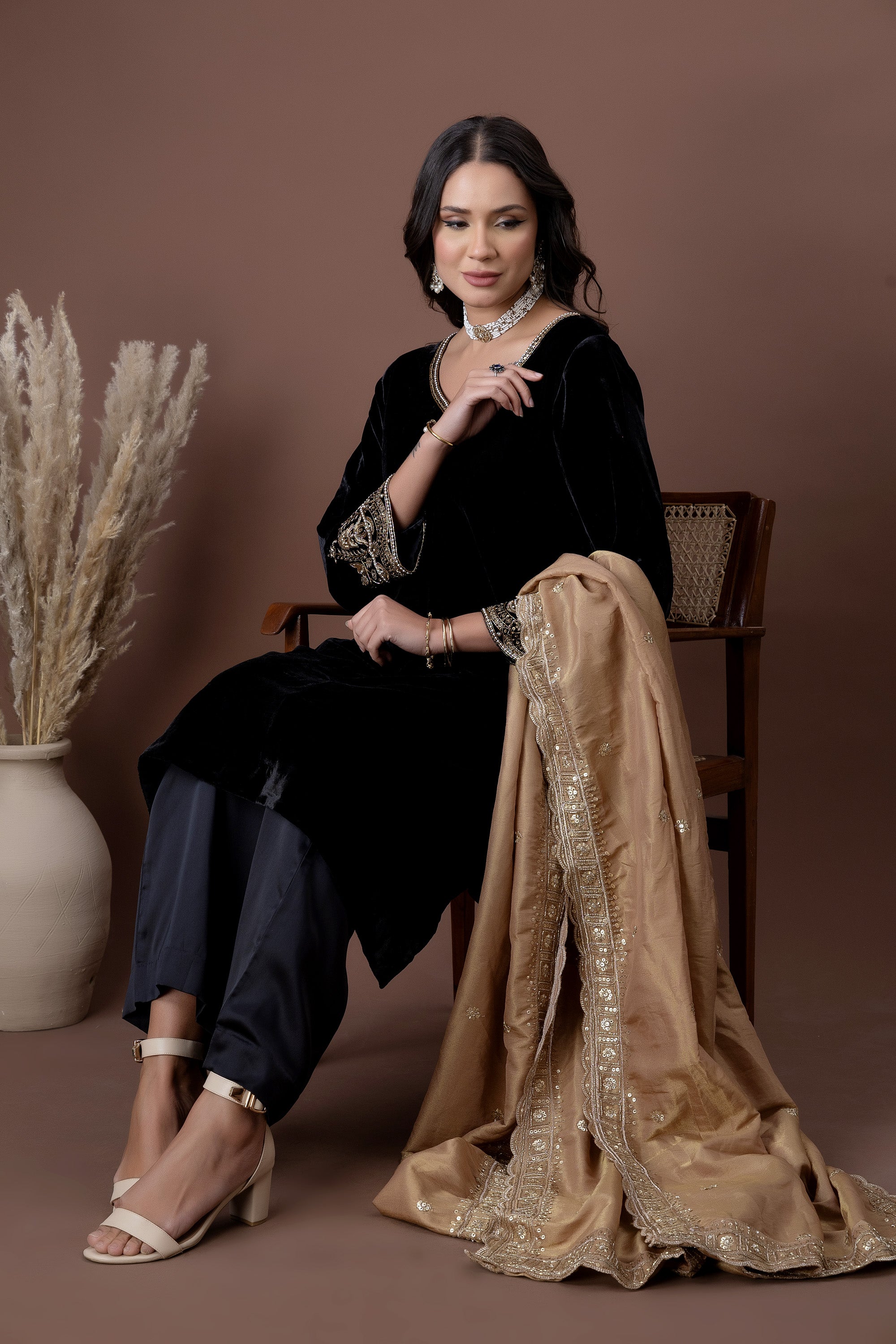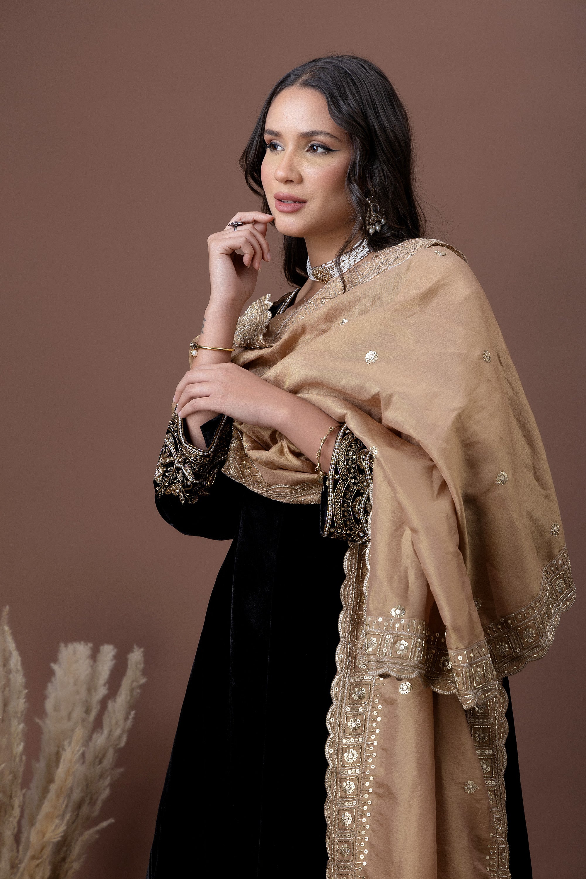 Aarzoo Rust Velvet Dupatta Set