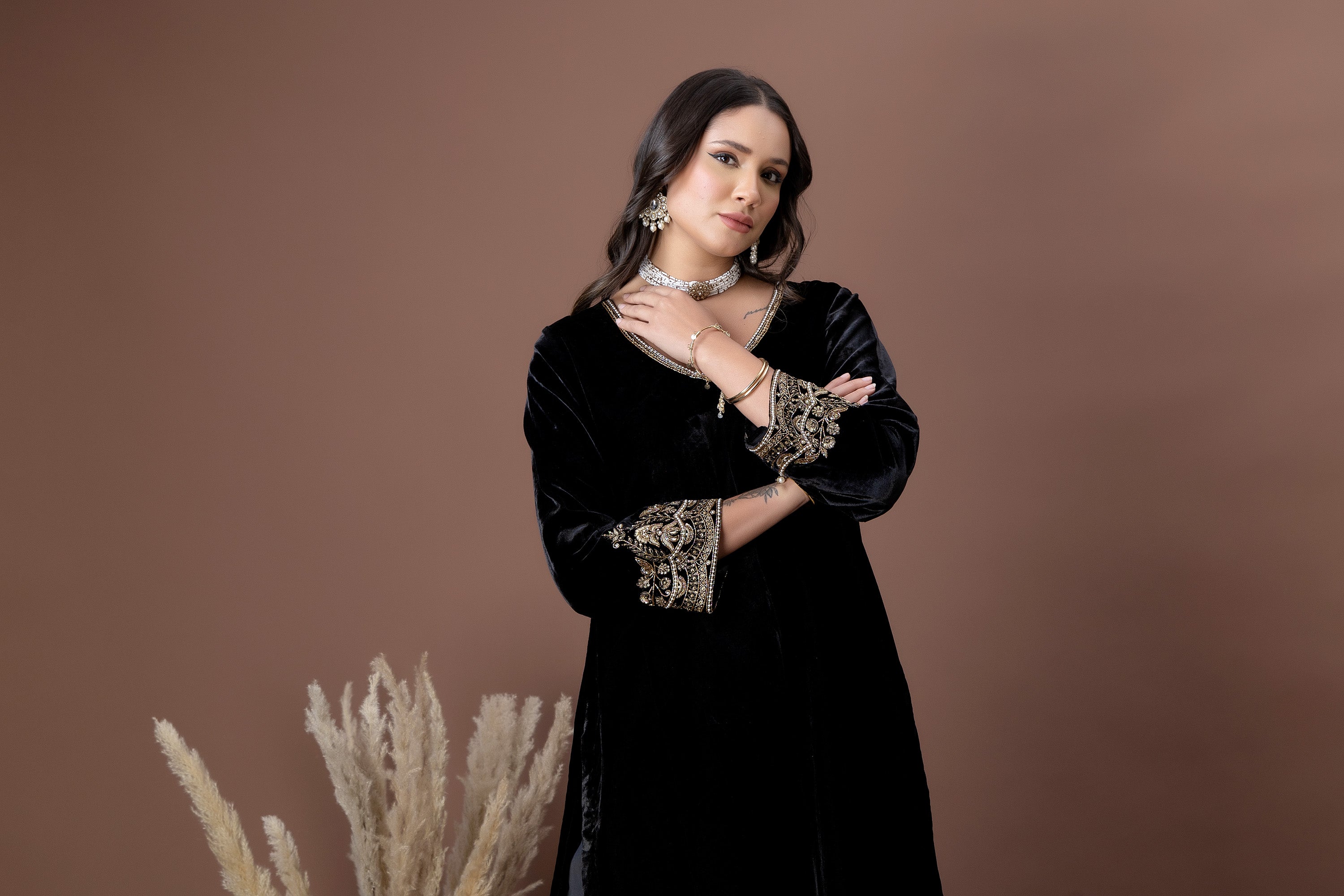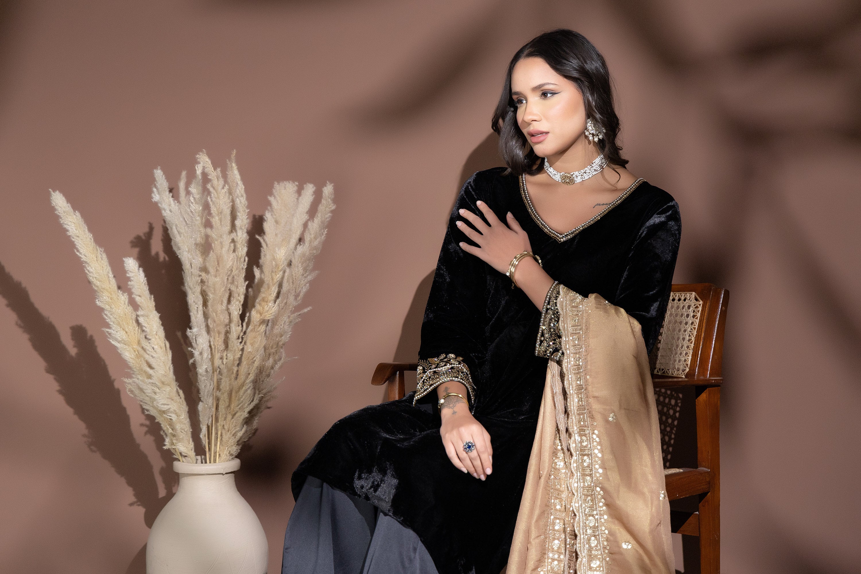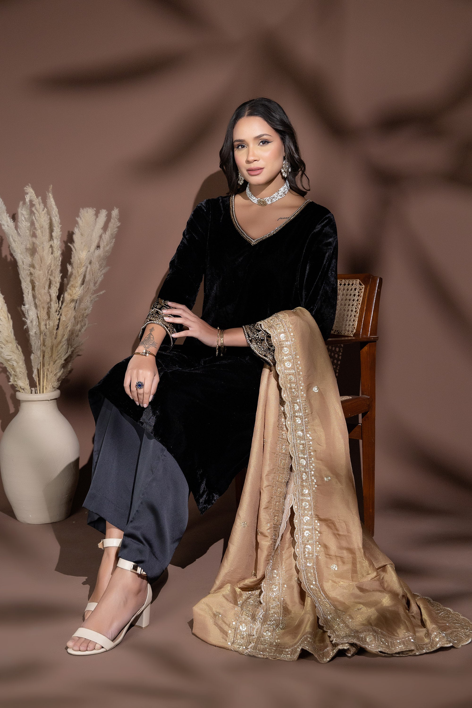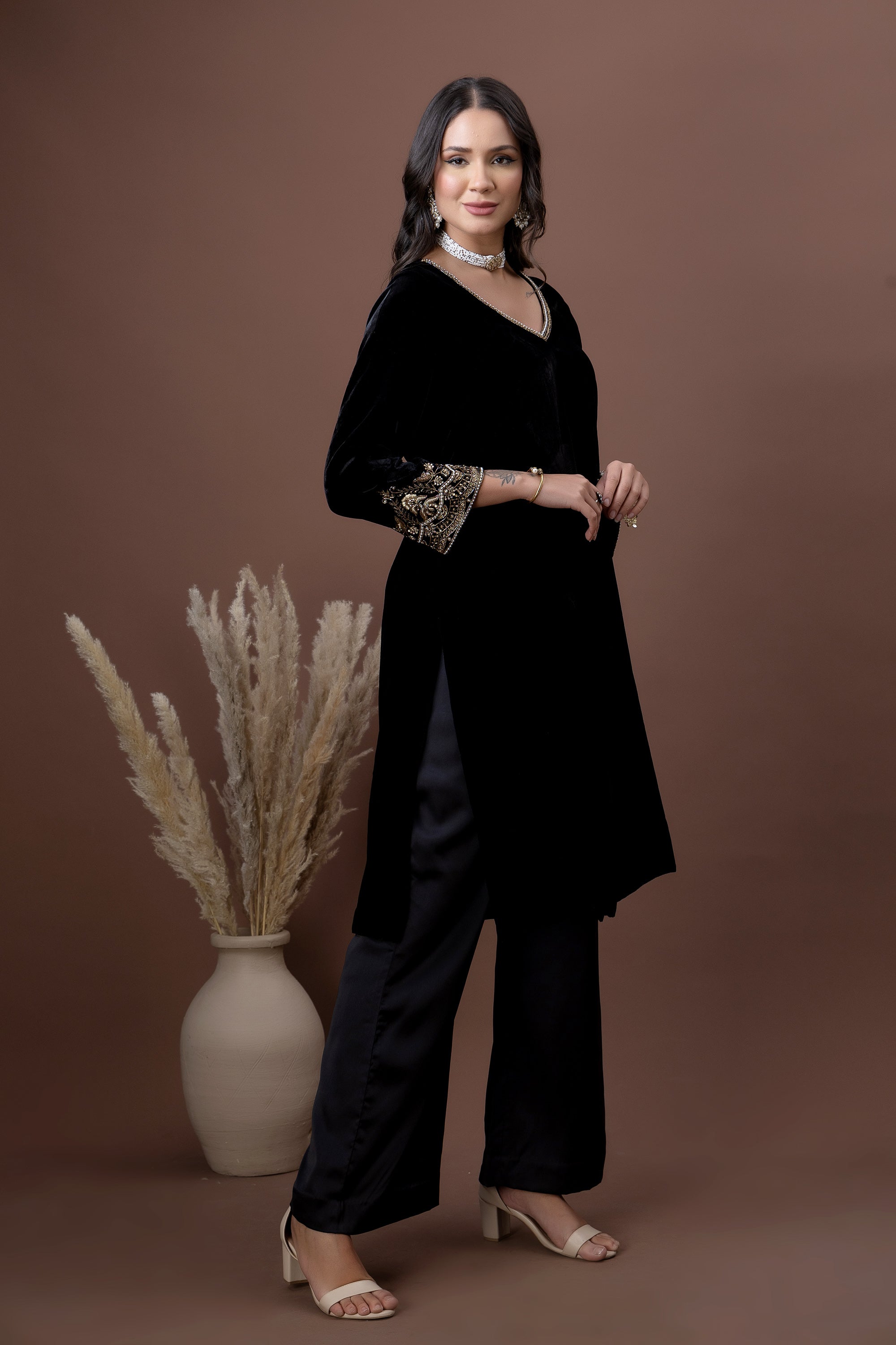Sukoon Black velvet Garara set