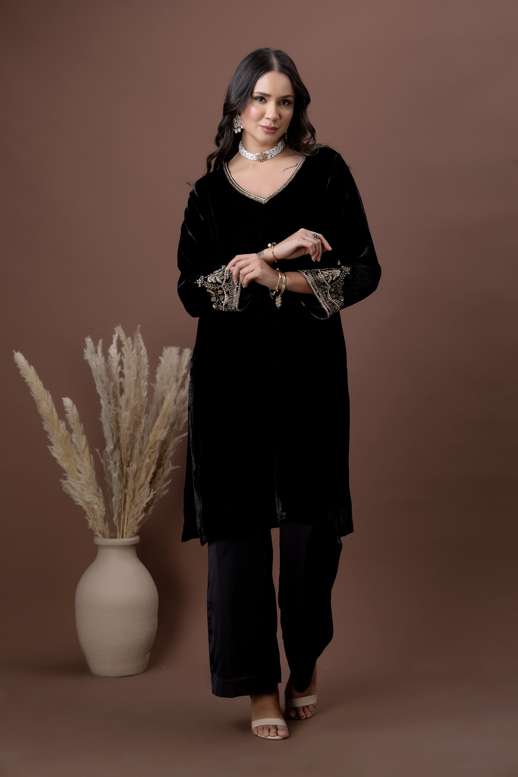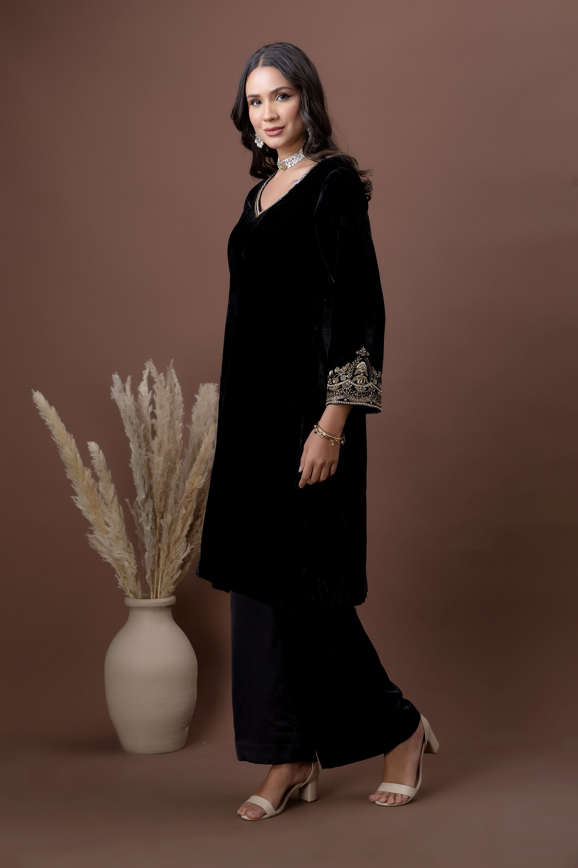 Shaam Noir Velvet Kurta Set