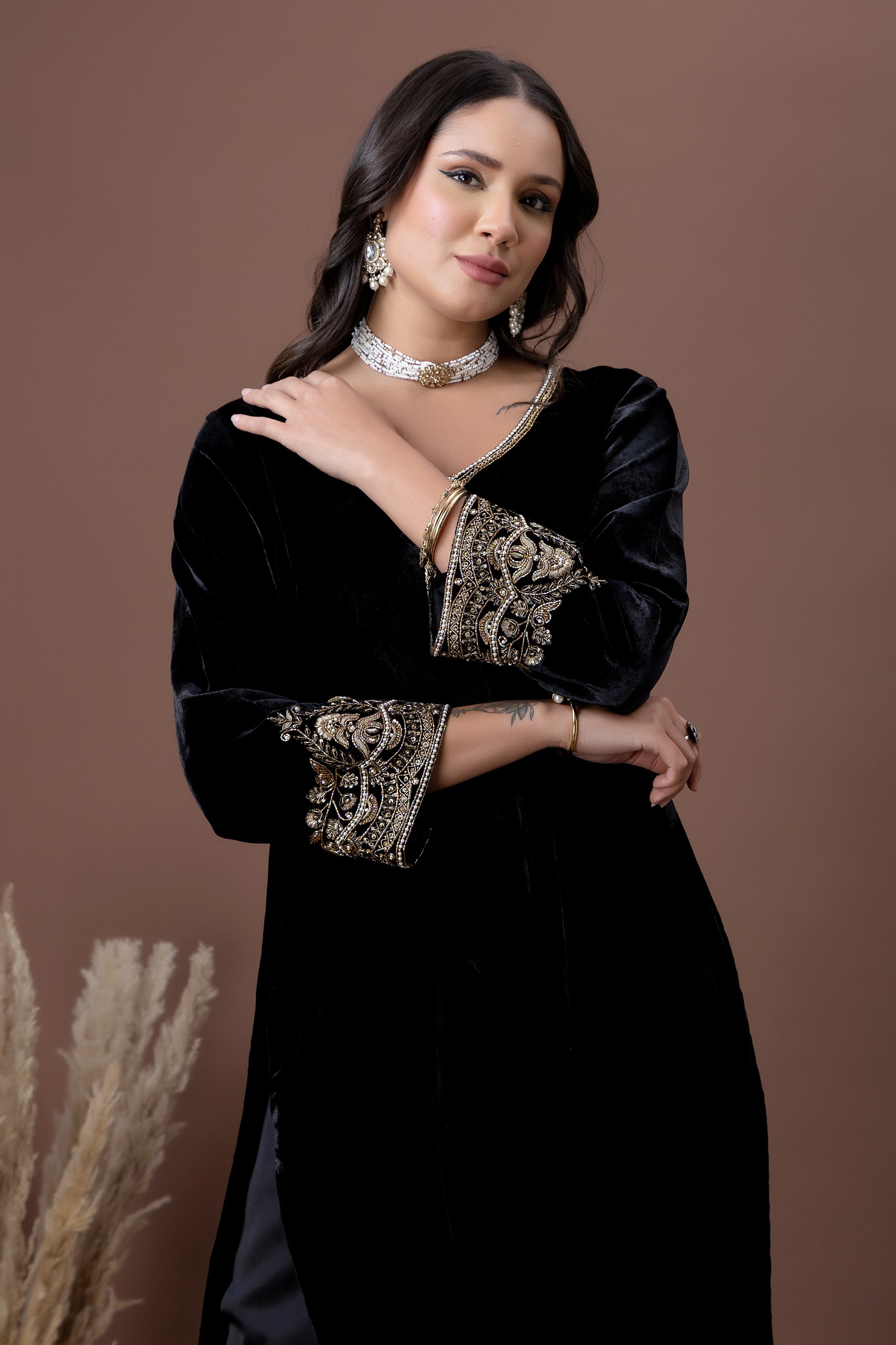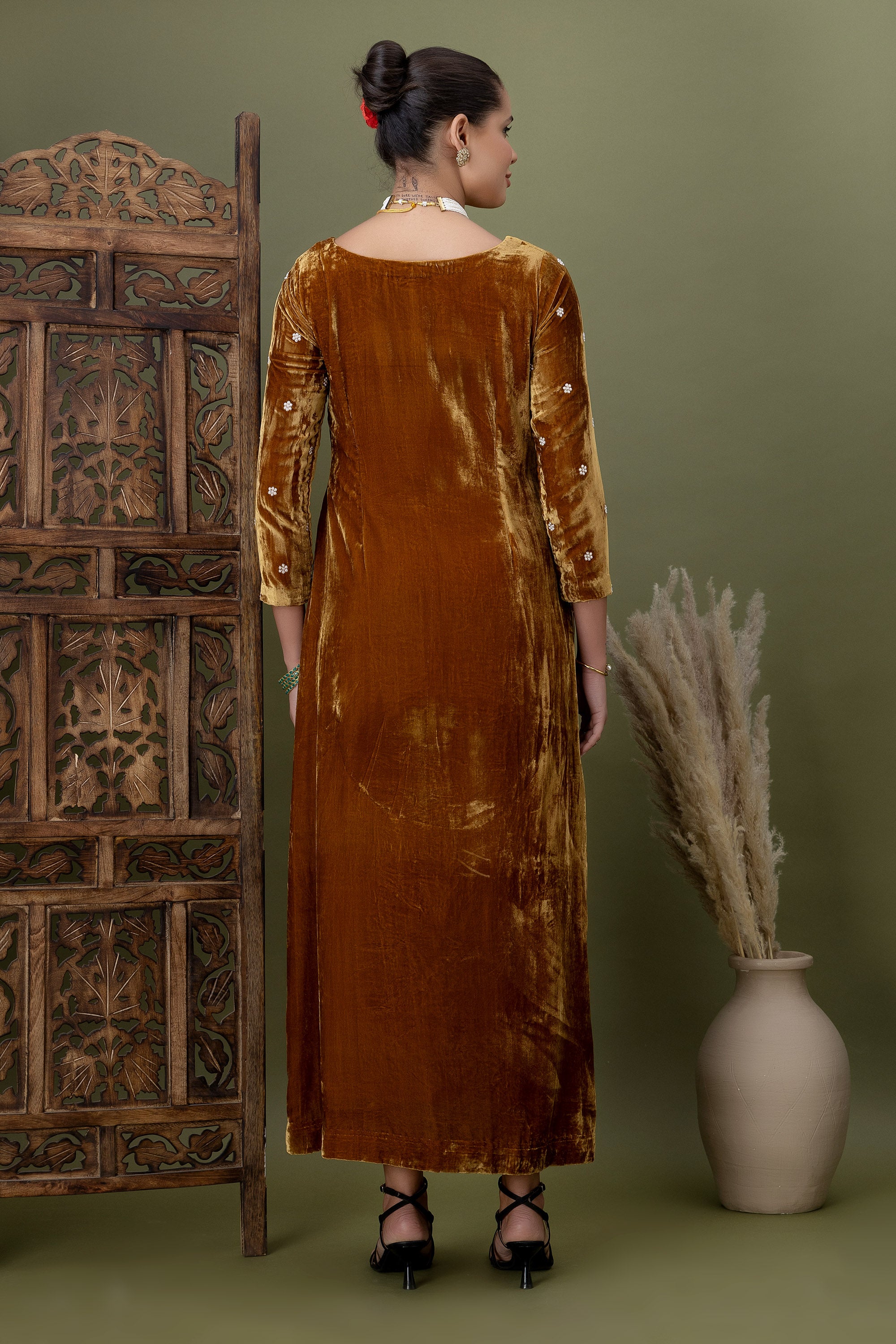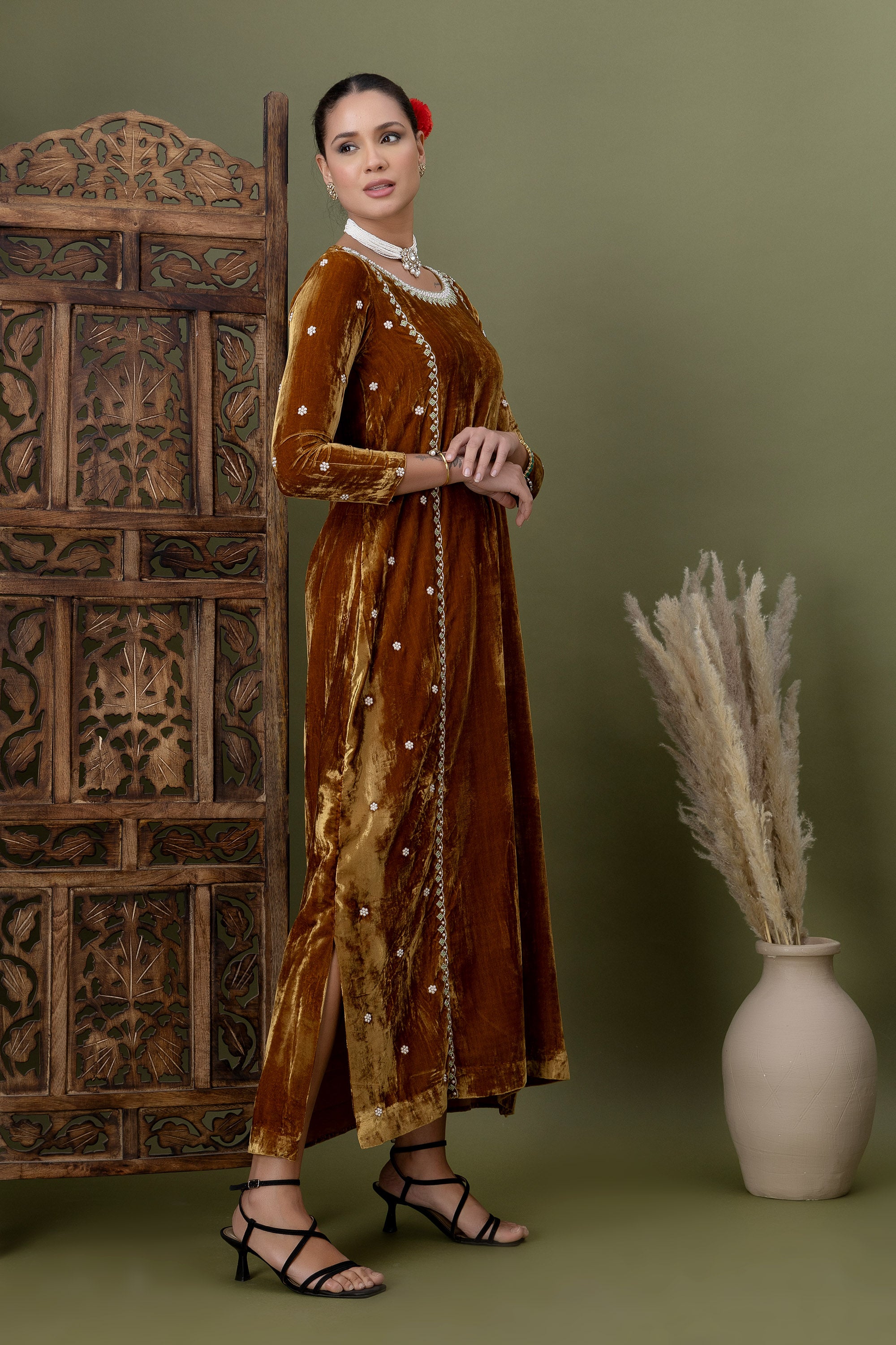 Mehrab Caramel Velvet Festive Kurta