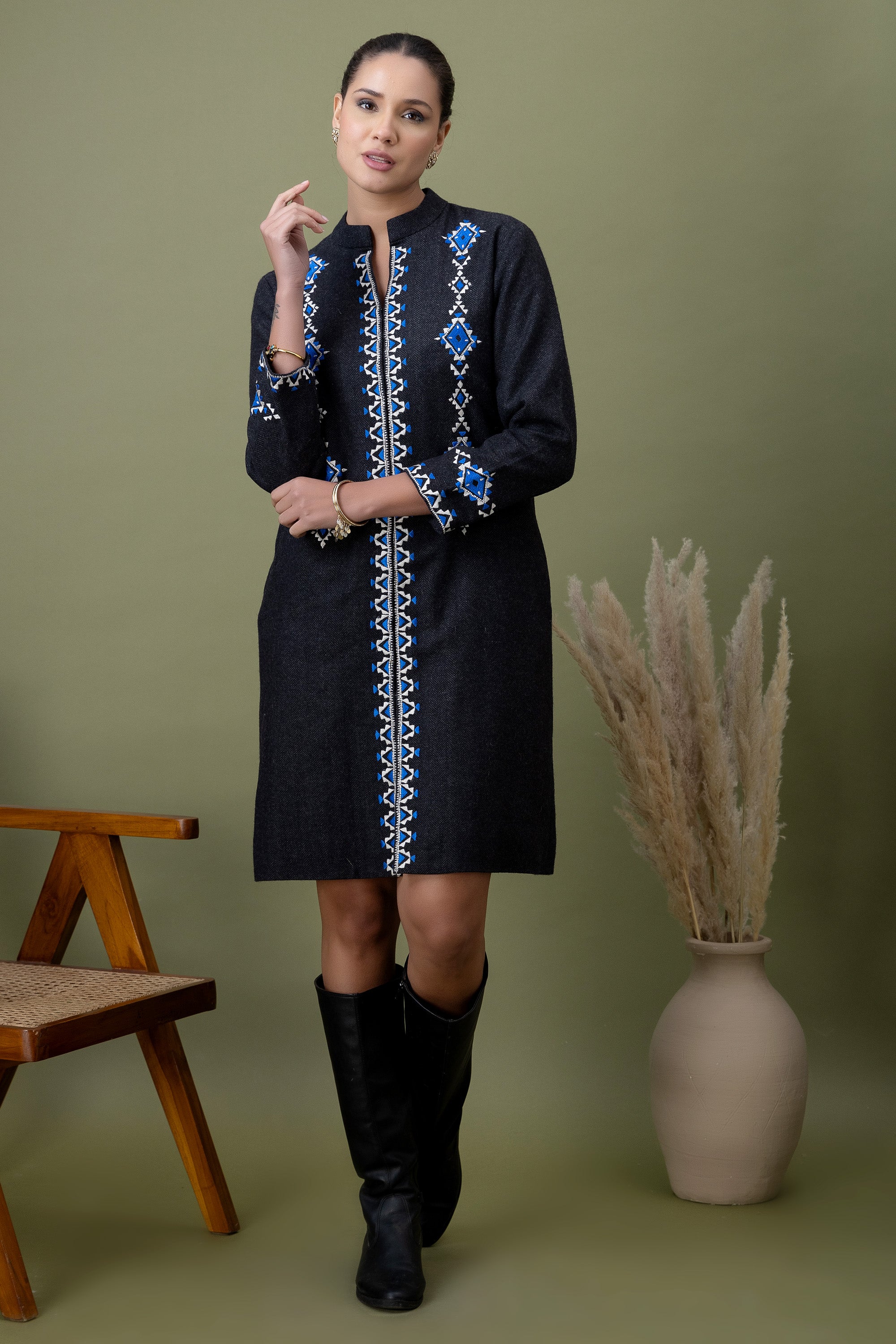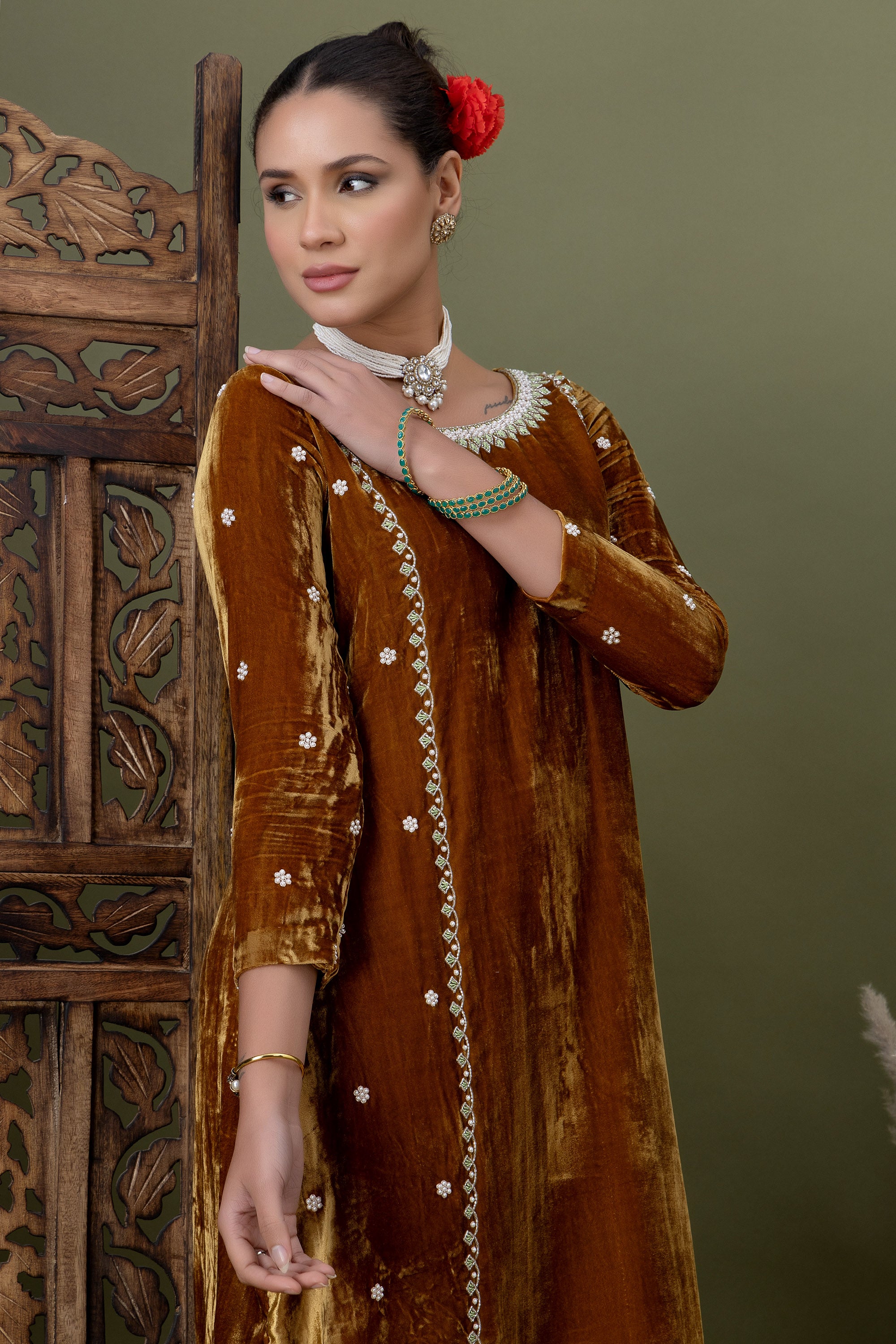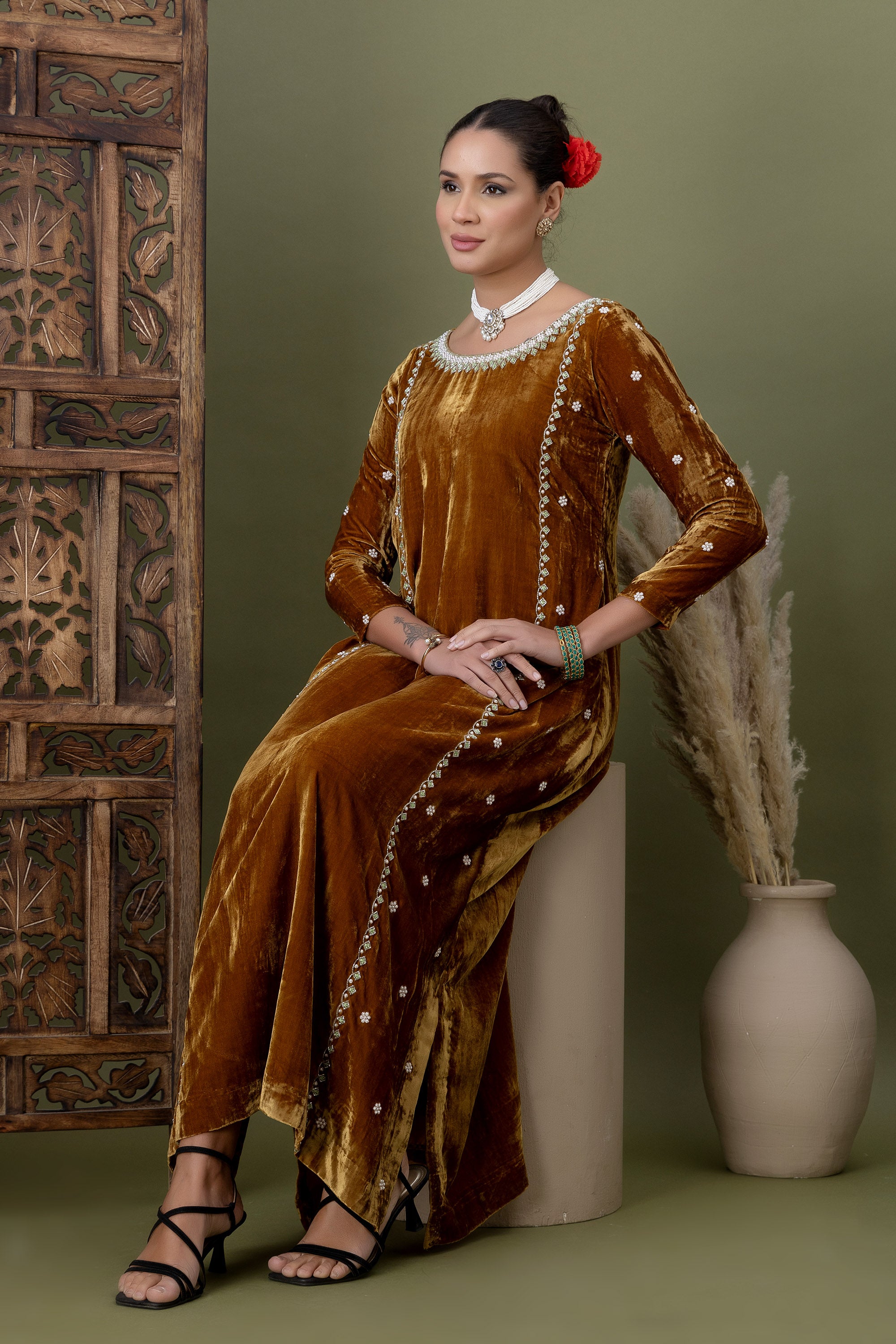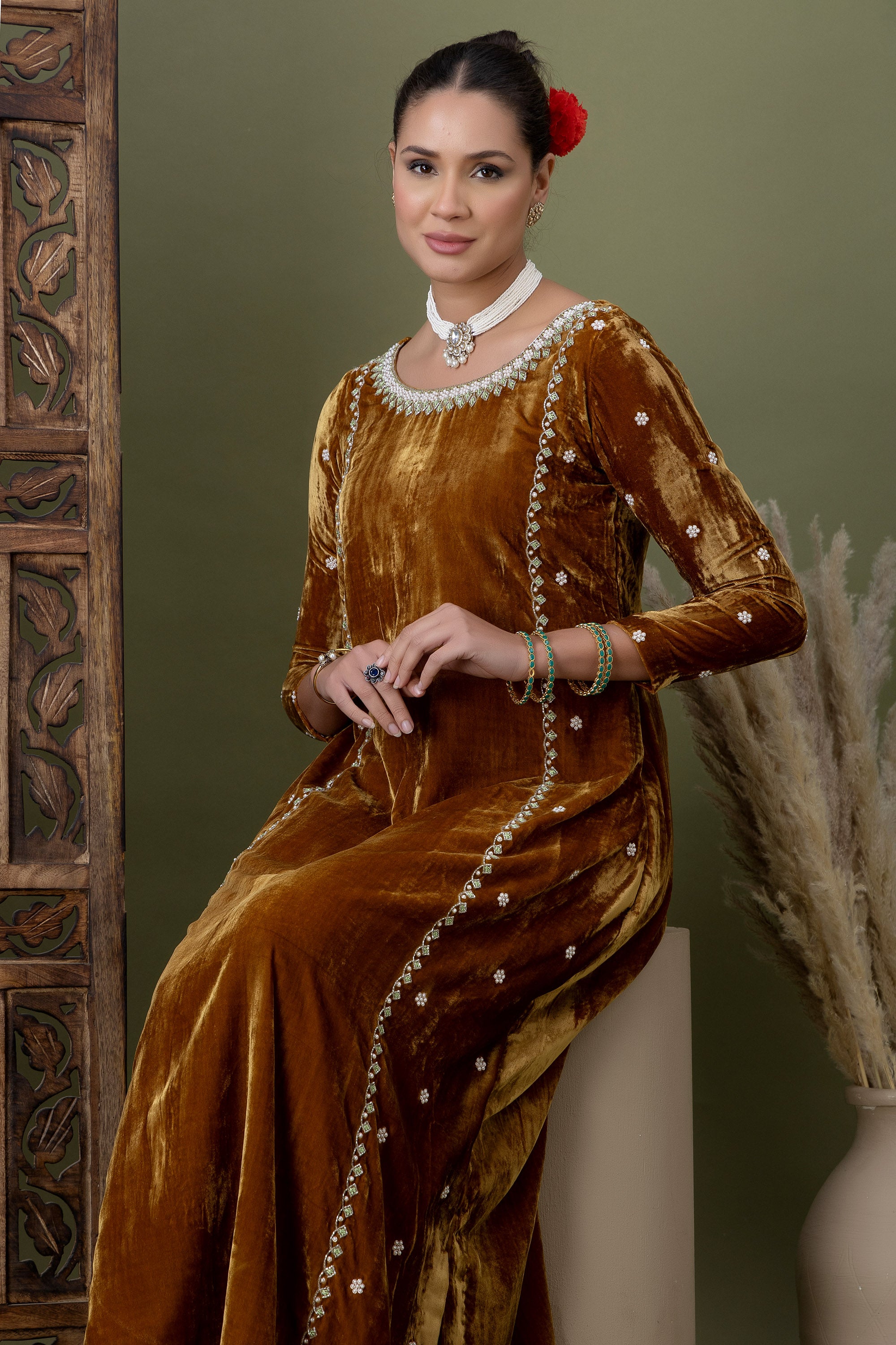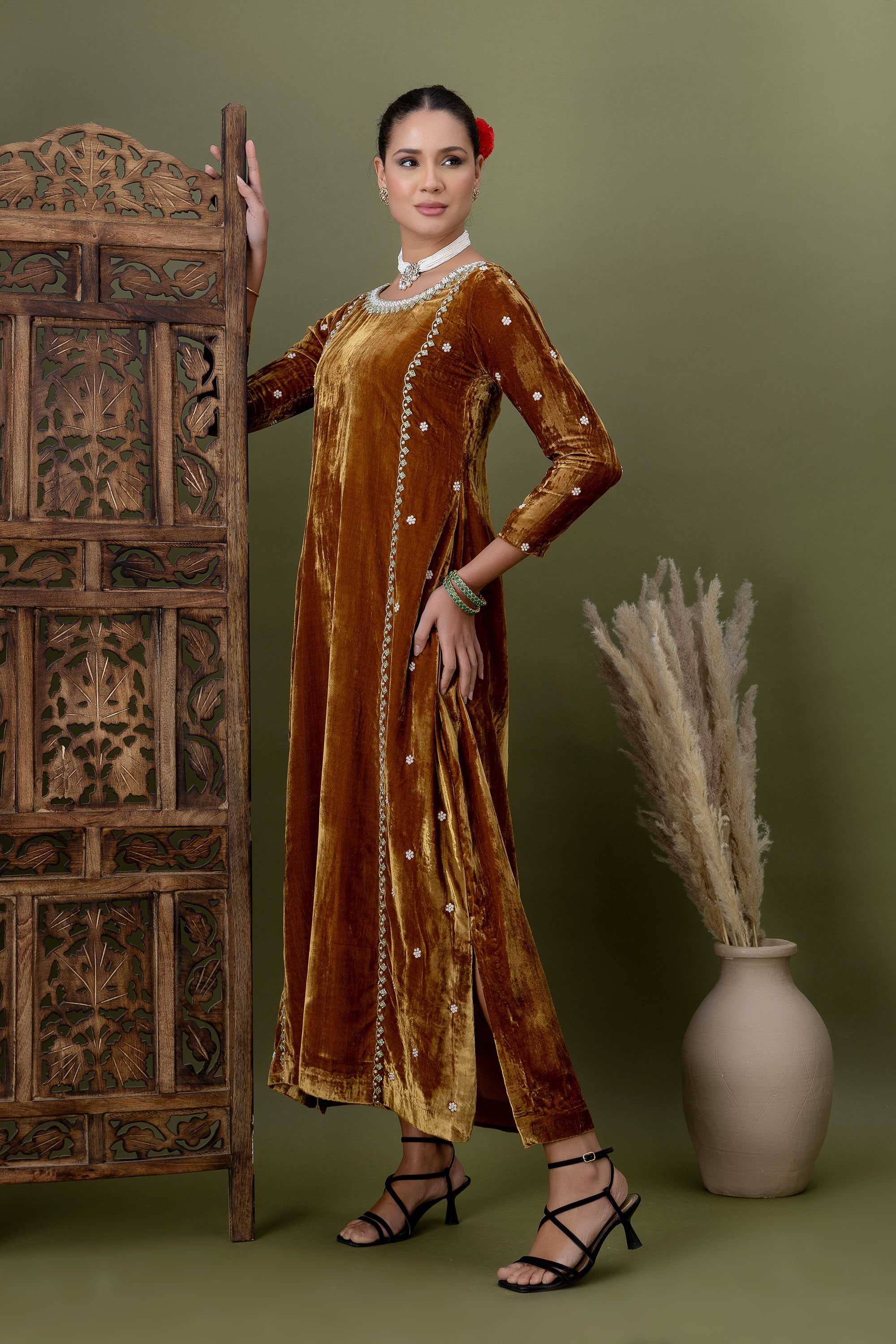 Aarzoo Olive Green Velvet Kurta
