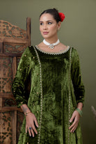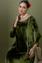 Aarzoo Olive Green Velvet Kurta