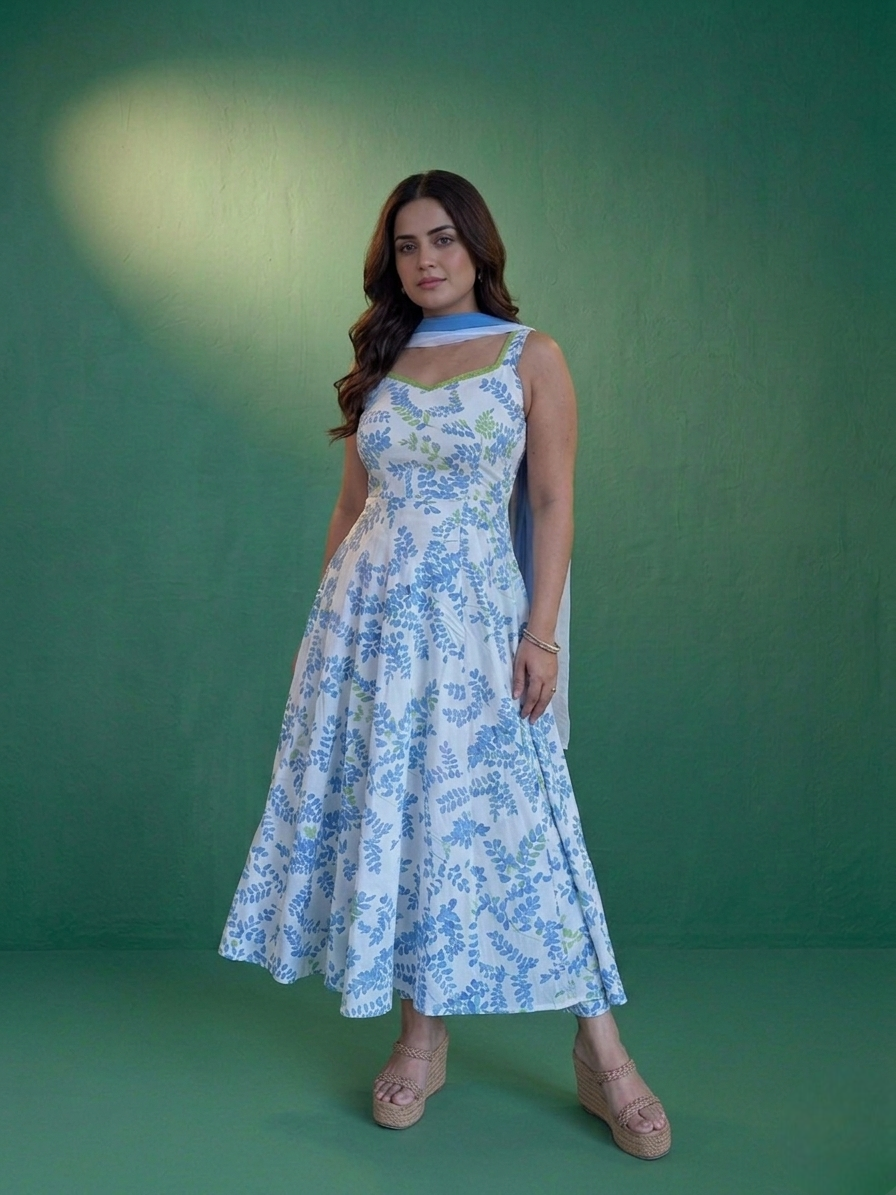 Step into effortless elegance with this beautifully designed printed midi dress, perfect for adding a fresh and feminine touch to your wardrobe. Adorned with a delicate floral pattern in soothing hues, this dress captures a graceful charm that’s ideal for daytime events and casual outings.