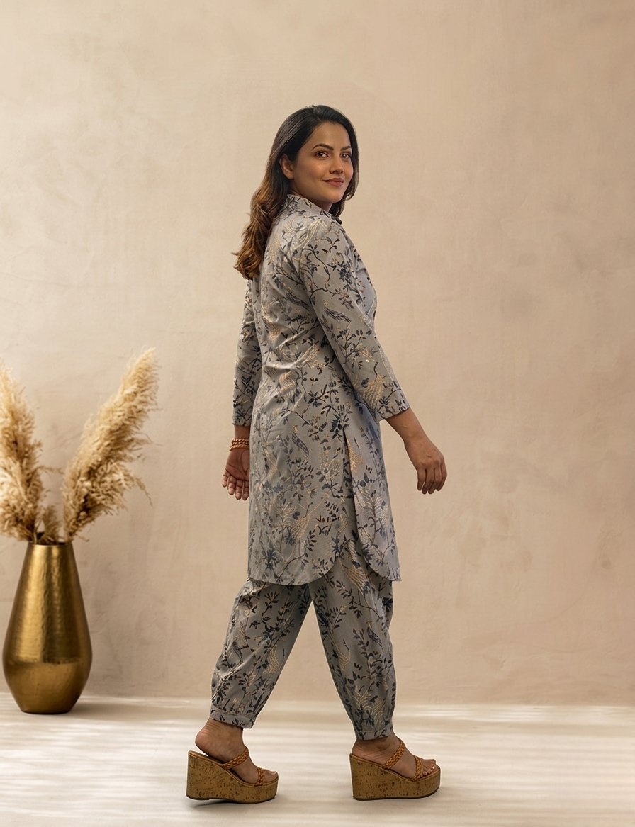 Elevate your everyday style with this elegant printed kurta set, designed for effortless comfort and timeless charm. Crafted from premium-quality fabric, this ensemble features a soothing neutral base adorned with delicate floral prints that add a touch of sophistication.