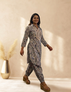Linen blue print Afghani set