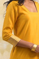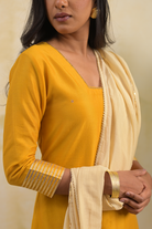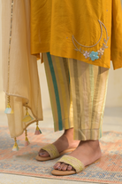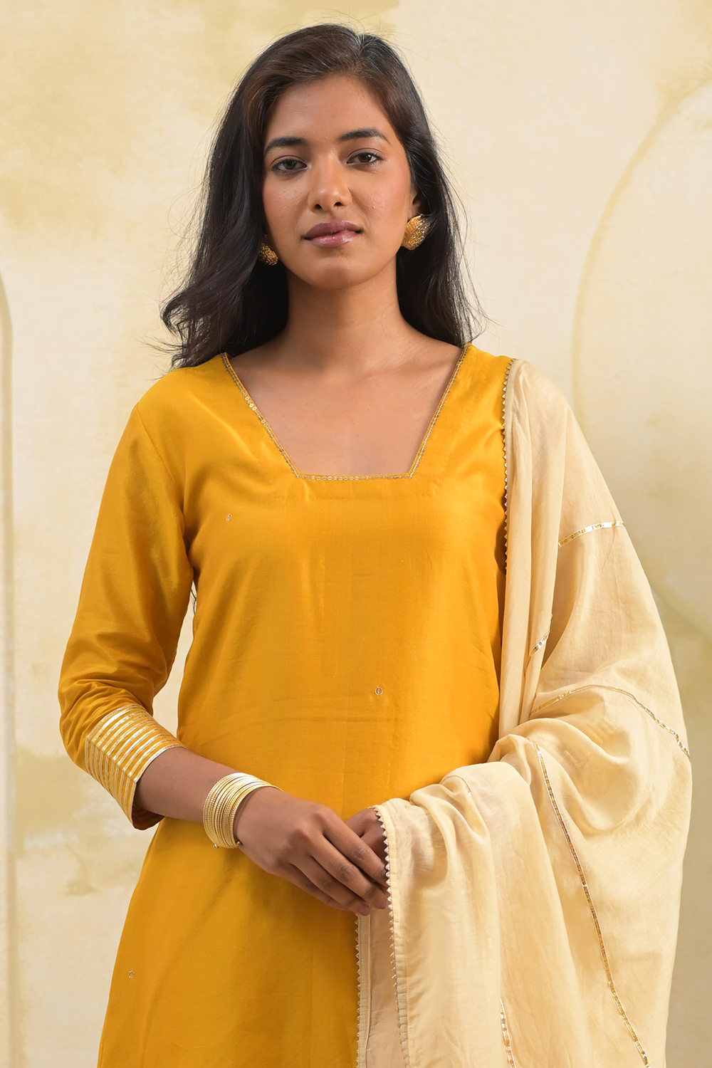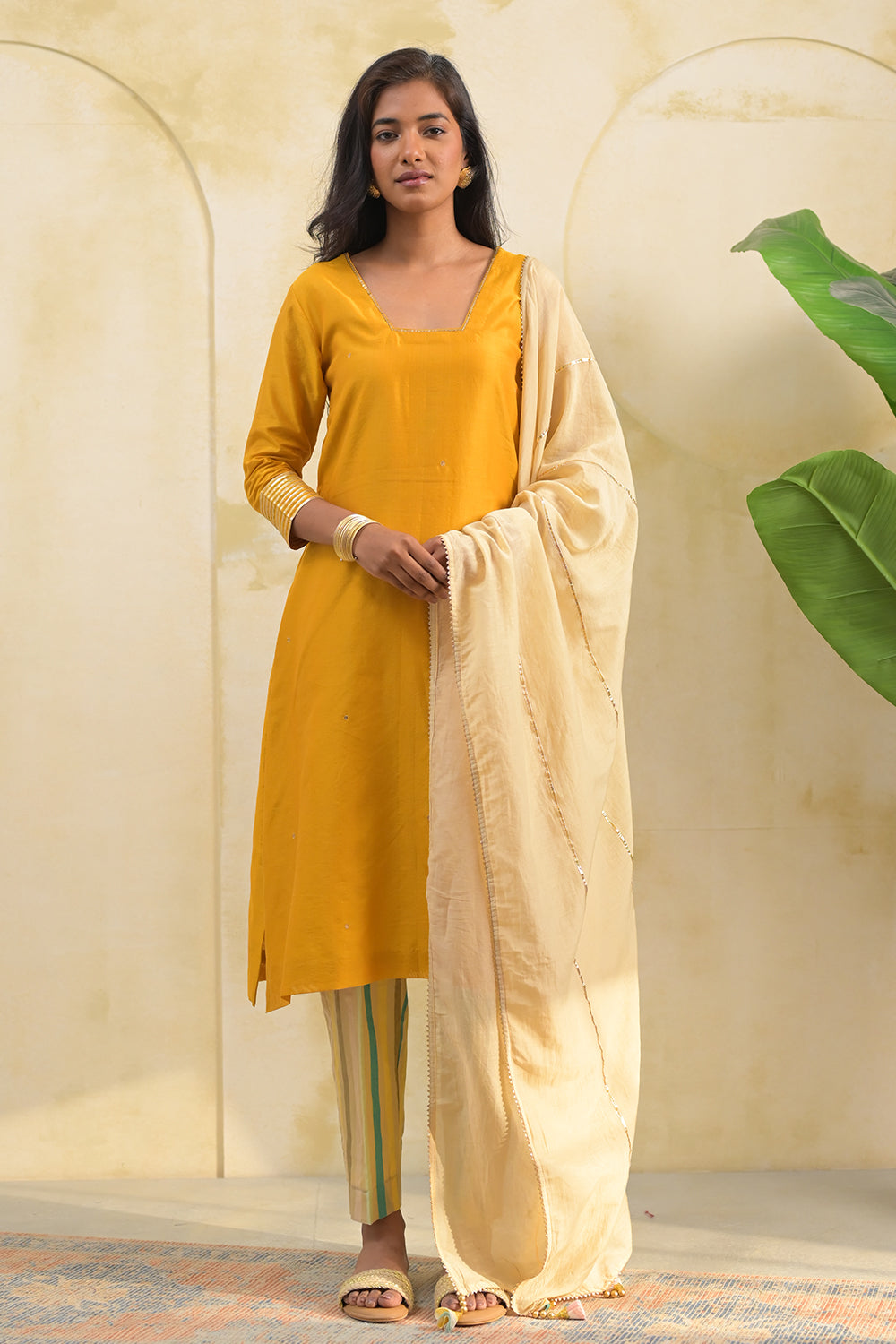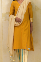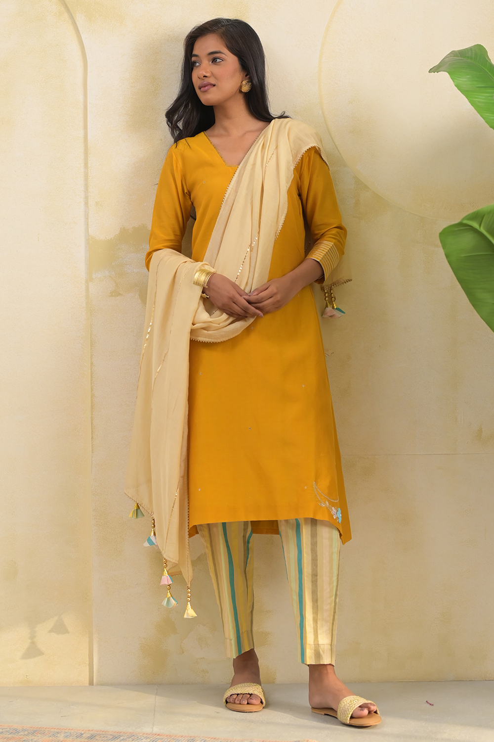 Chanderi Kurta Set with Stripe Chanderi Pants and Cotton Dupatta